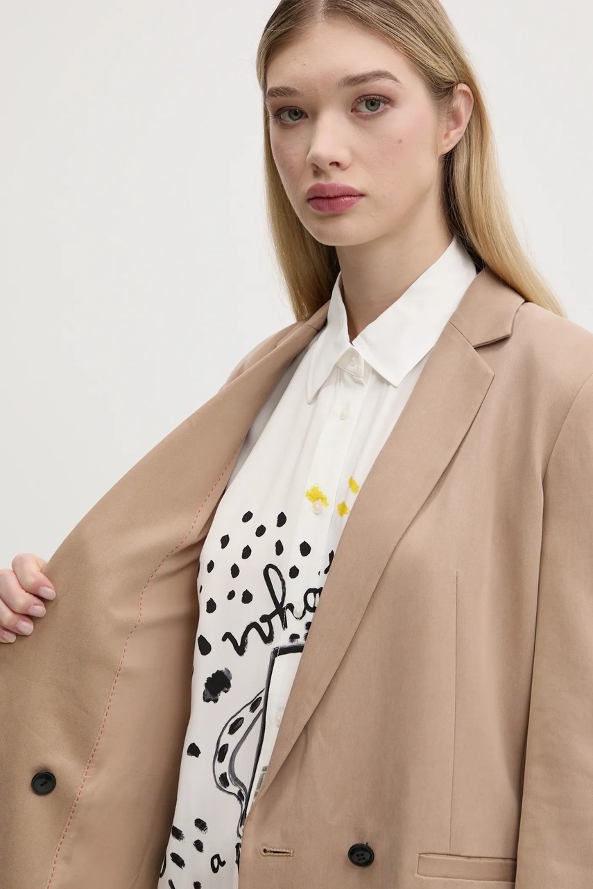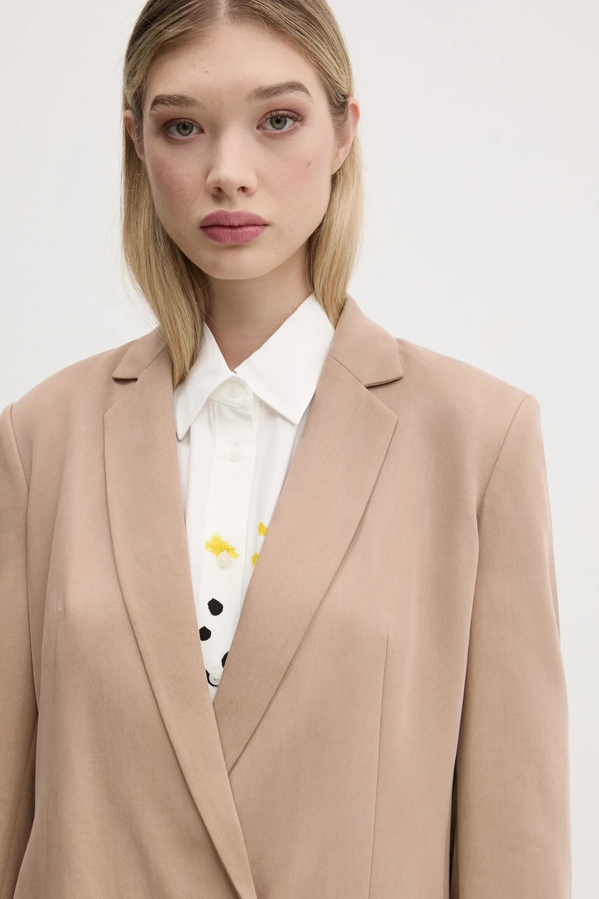 HUGO marynarka kolor beżowy dwurzędowa gładka 50540819