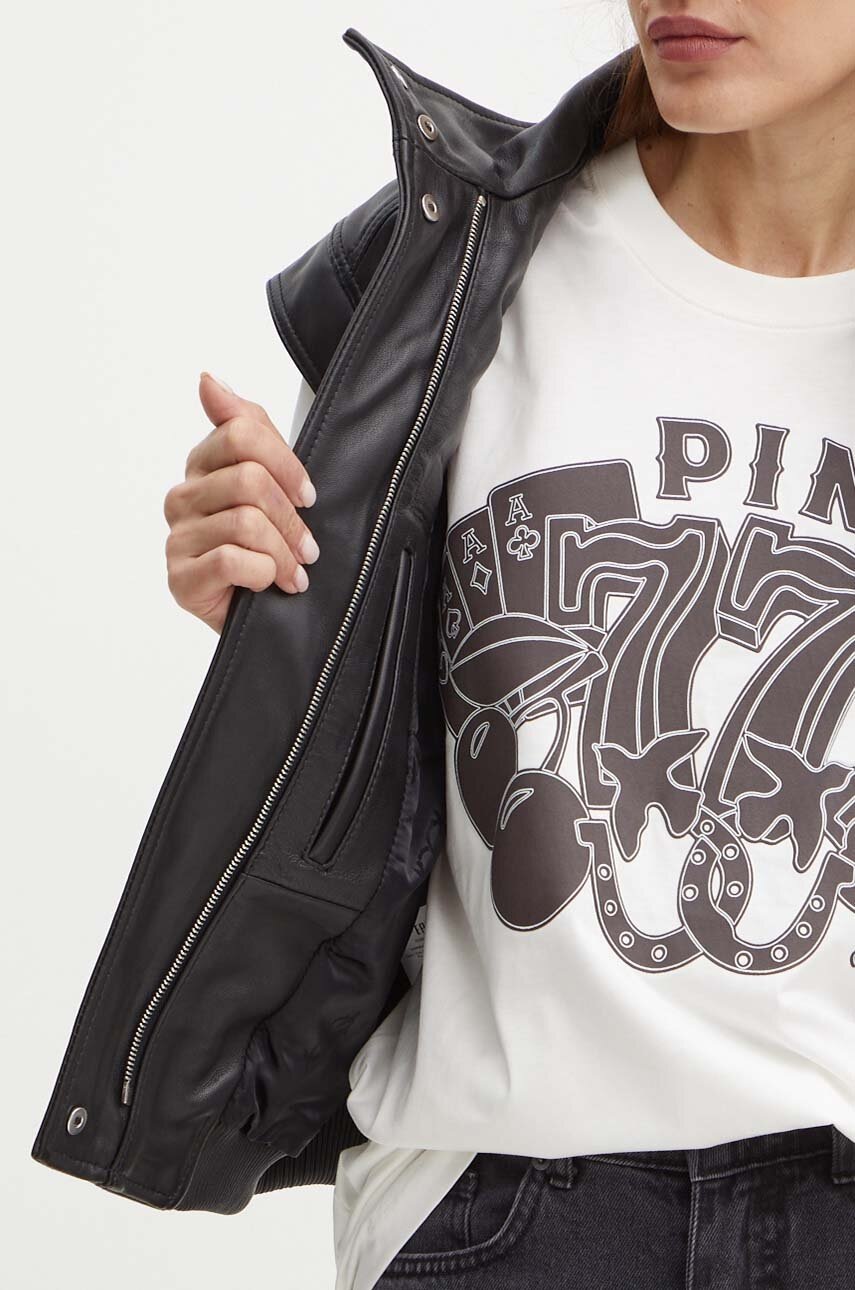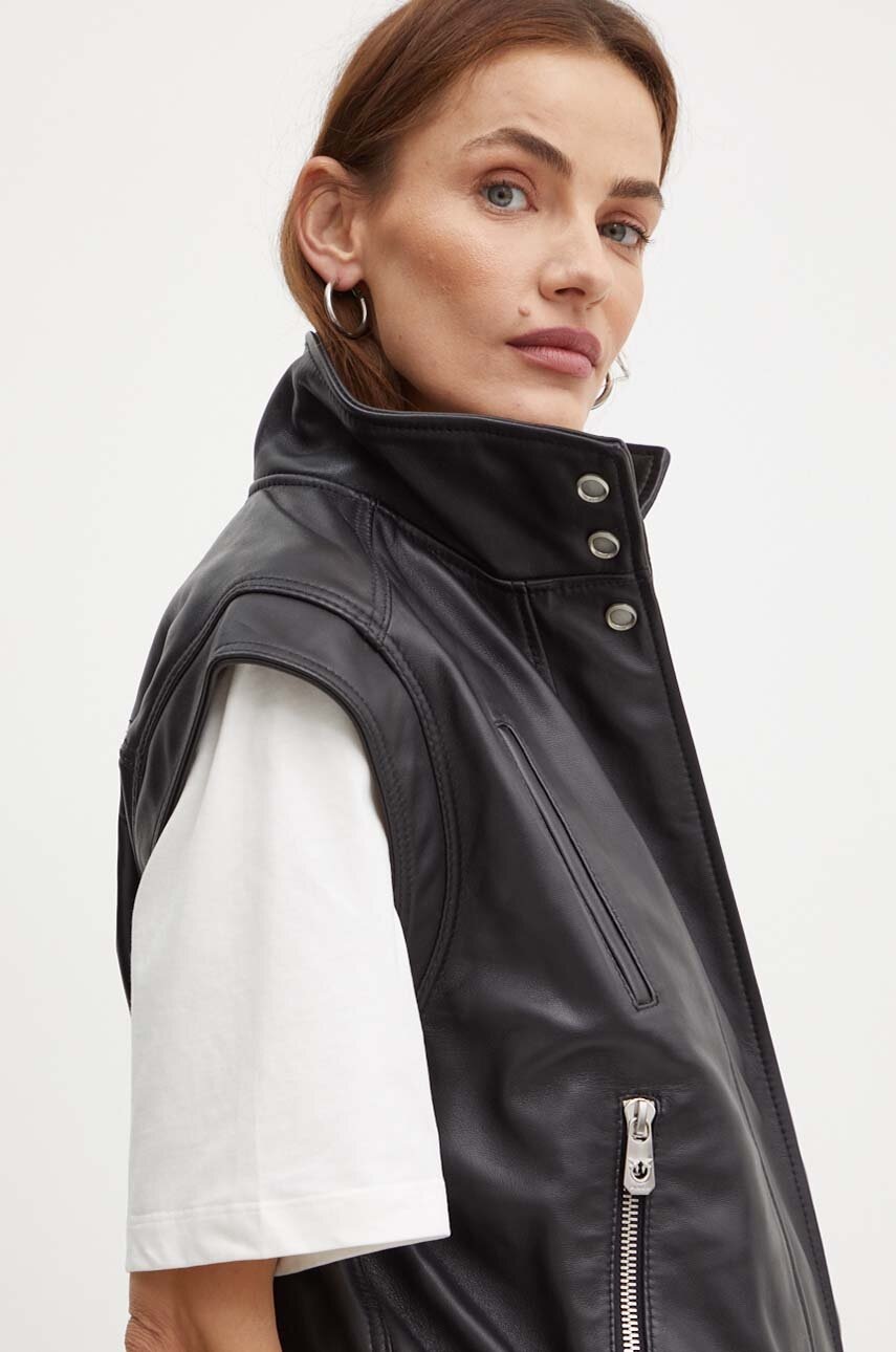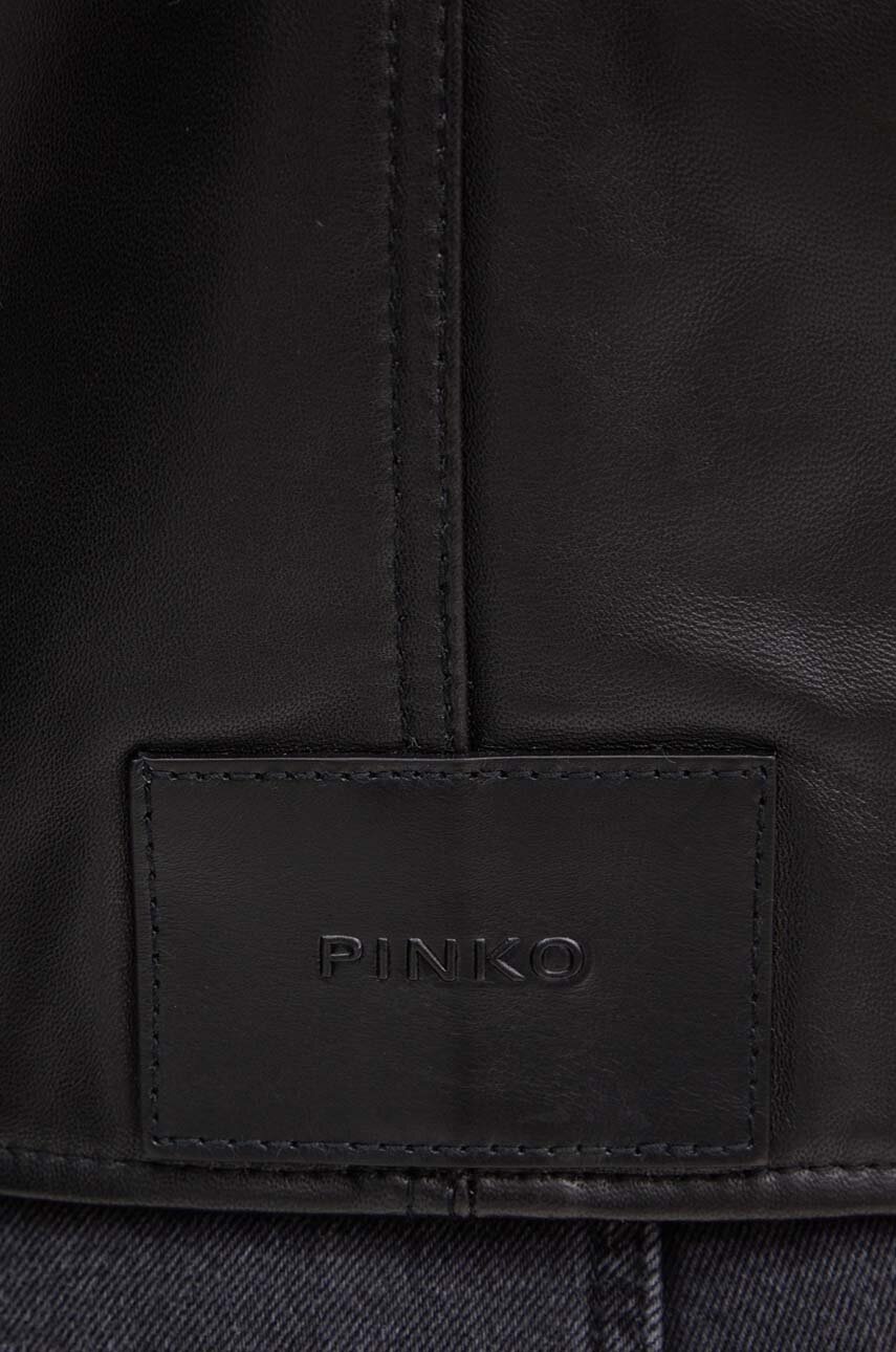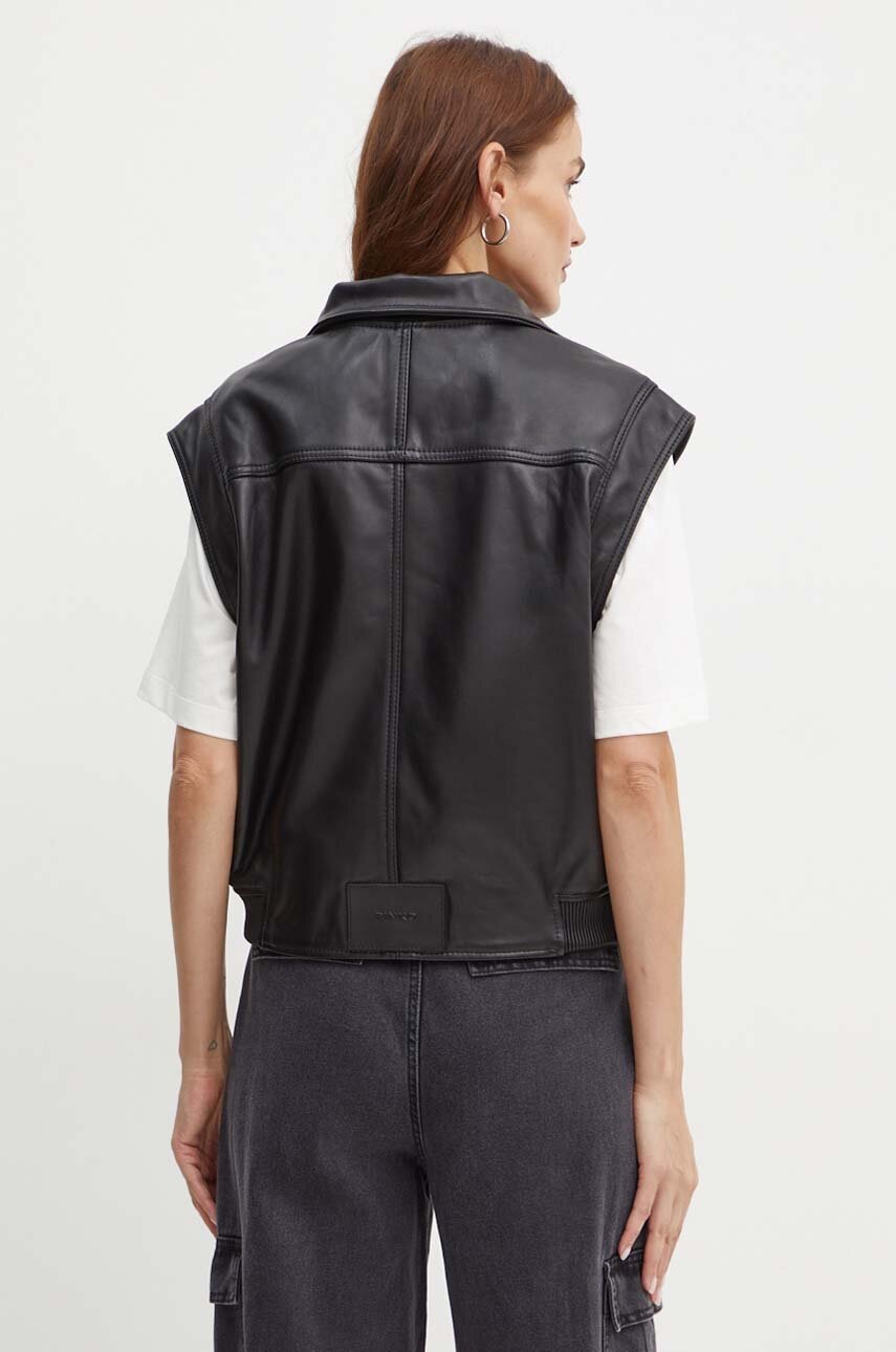 Pinko bezrękawnik skórzany damski kolor czarny przejściowy 103898 A21L