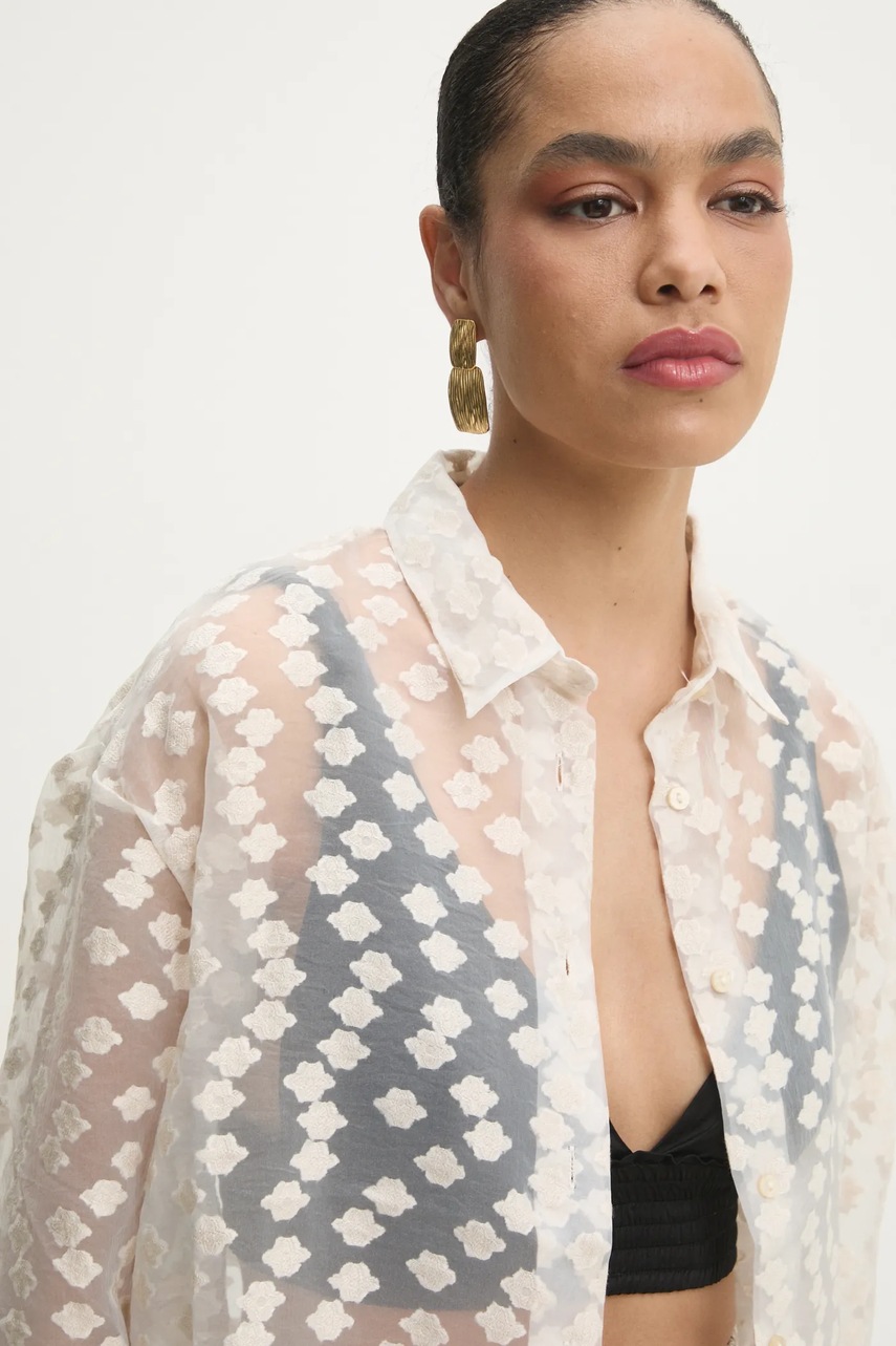 Answear.LAB koszula damska kolor beżowy relaxed z kołnierzykiem klasycznym