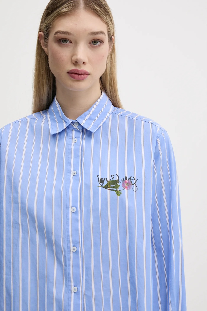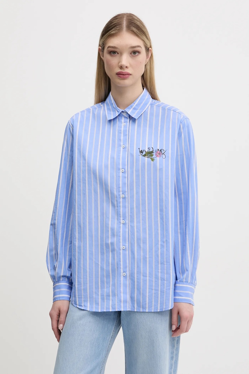 Desigual koszula bawełniana DONT DO IT damska kolor niebieski regular z kołnierzykiem klasycznym 25SWCW16