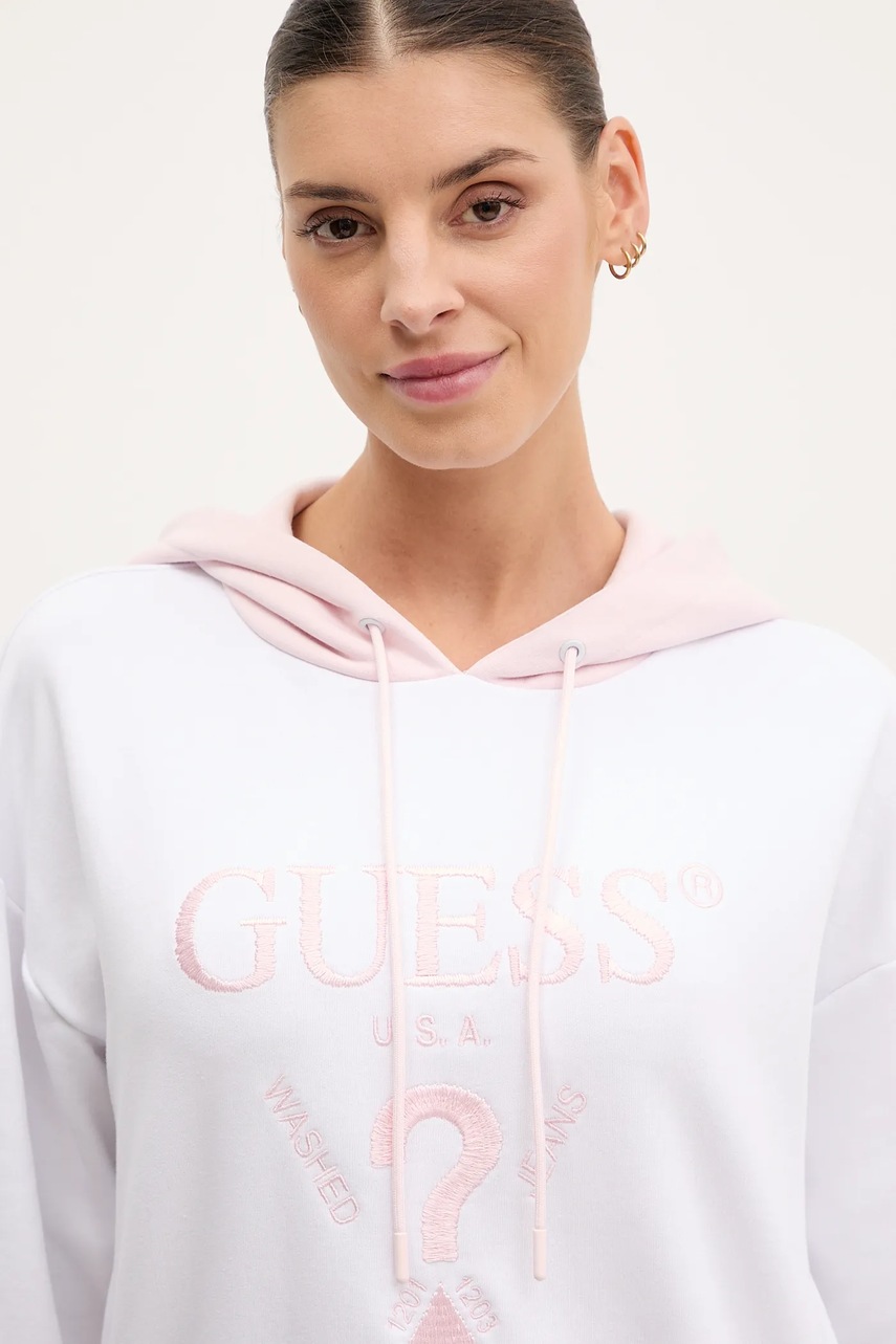 Guess bluza YARROW damska kolor biały z kapturem z aplikacją V5GQ17 KCRT1