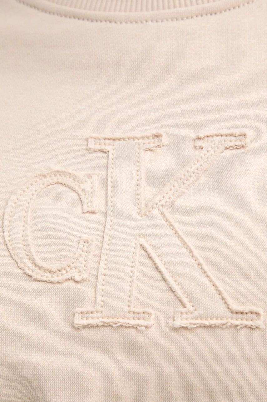 Calvin Klein Jeans bluza bawełniana damska kolor beżowy z aplikacją J20J225363