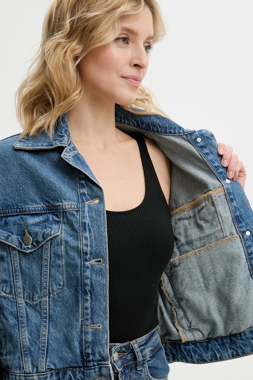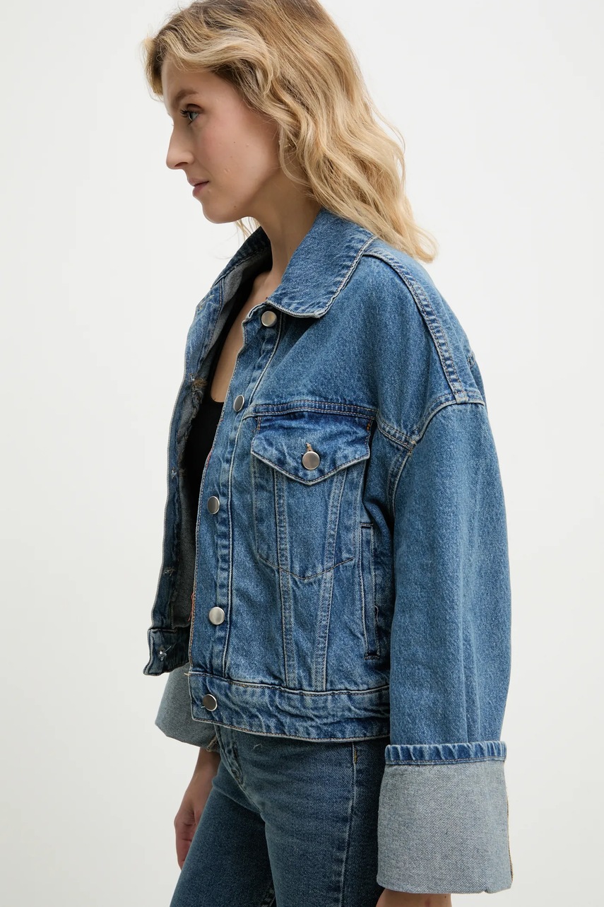 Answear.LAB kurtka jeansowa damska kolor niebieski przejściowa oversize
