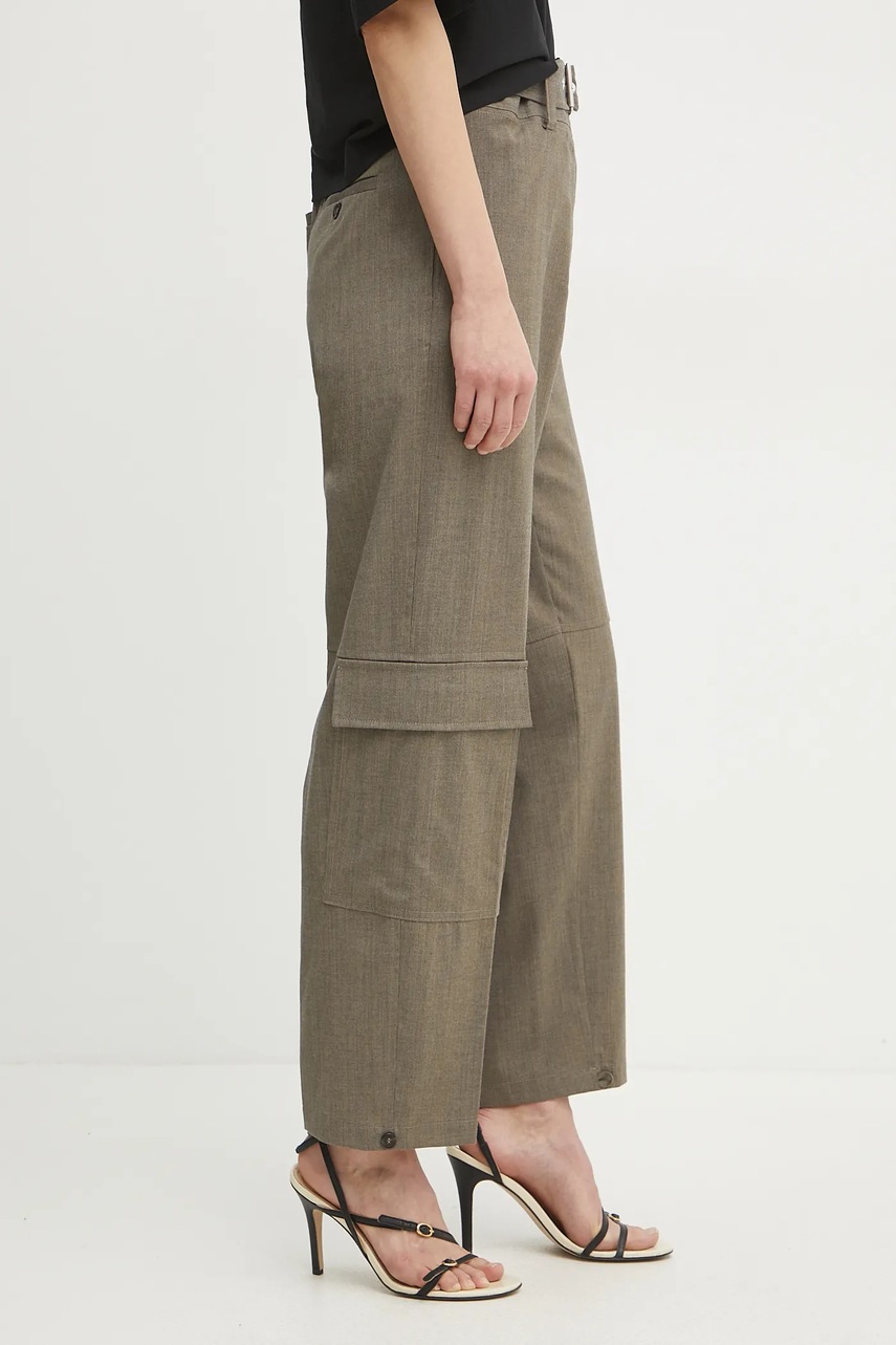 Pinko spodnie wełniane damskie kolor brązowy proste high waist 104701 A2BQ