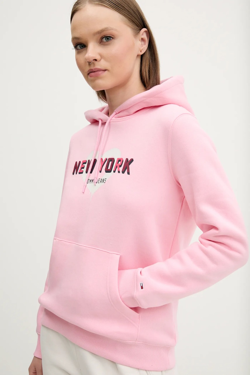 Tommy Jeans bluza damska kolor różowy z kapturem z nadrukiem DW0DW21771