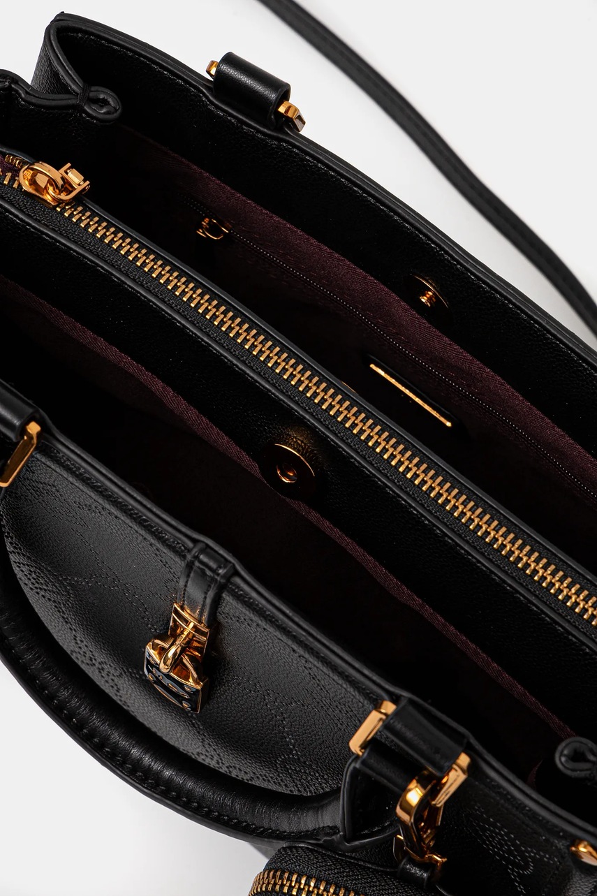 - Trzy kieszonki wewnętrzne: jedna zapinana na suwak, dwie wsuwane.