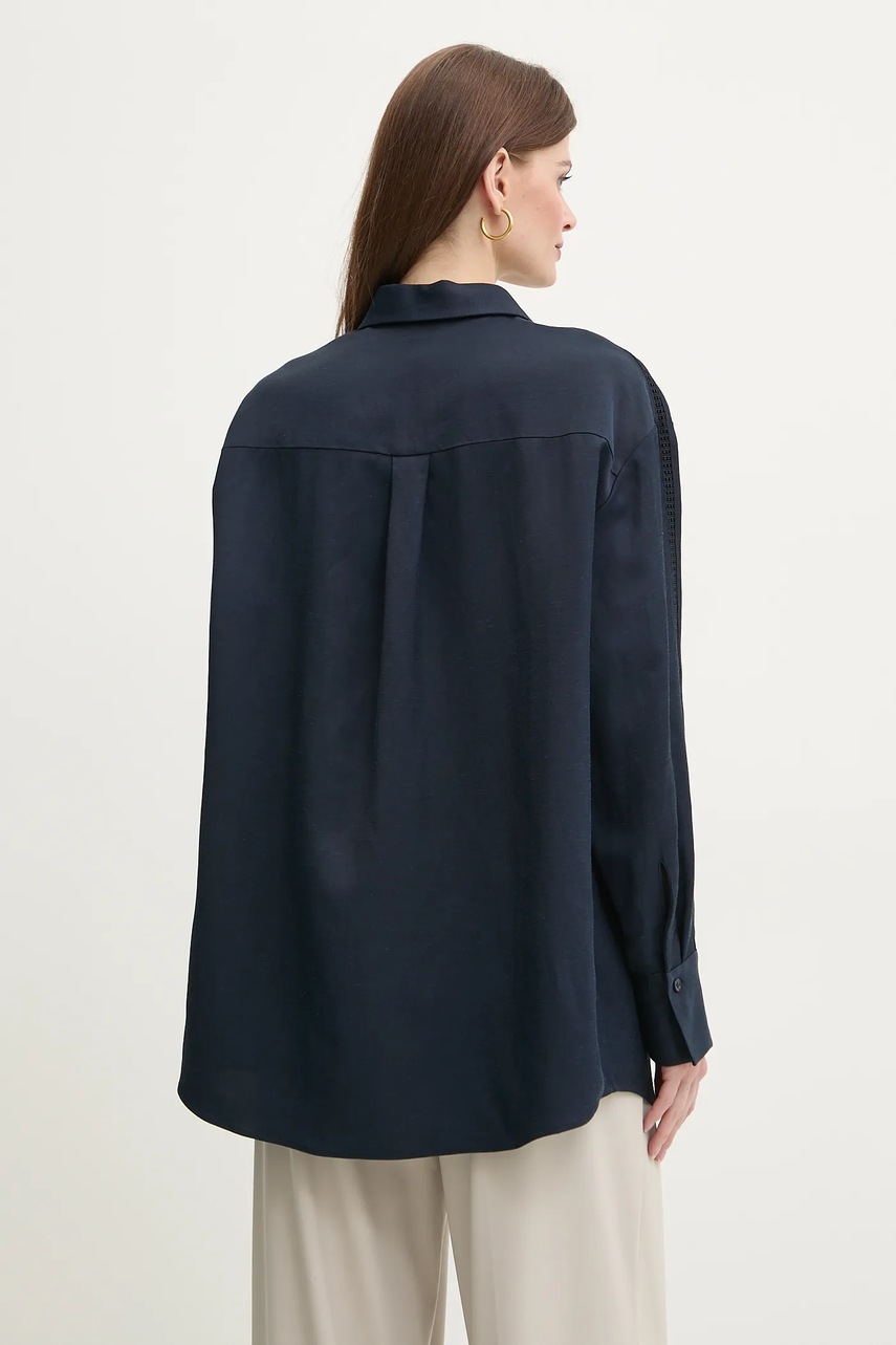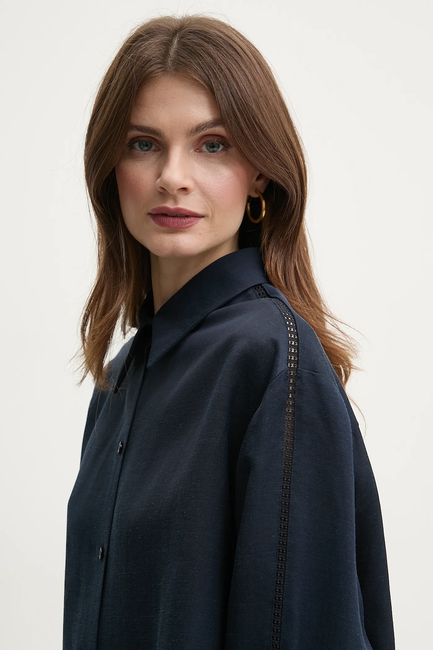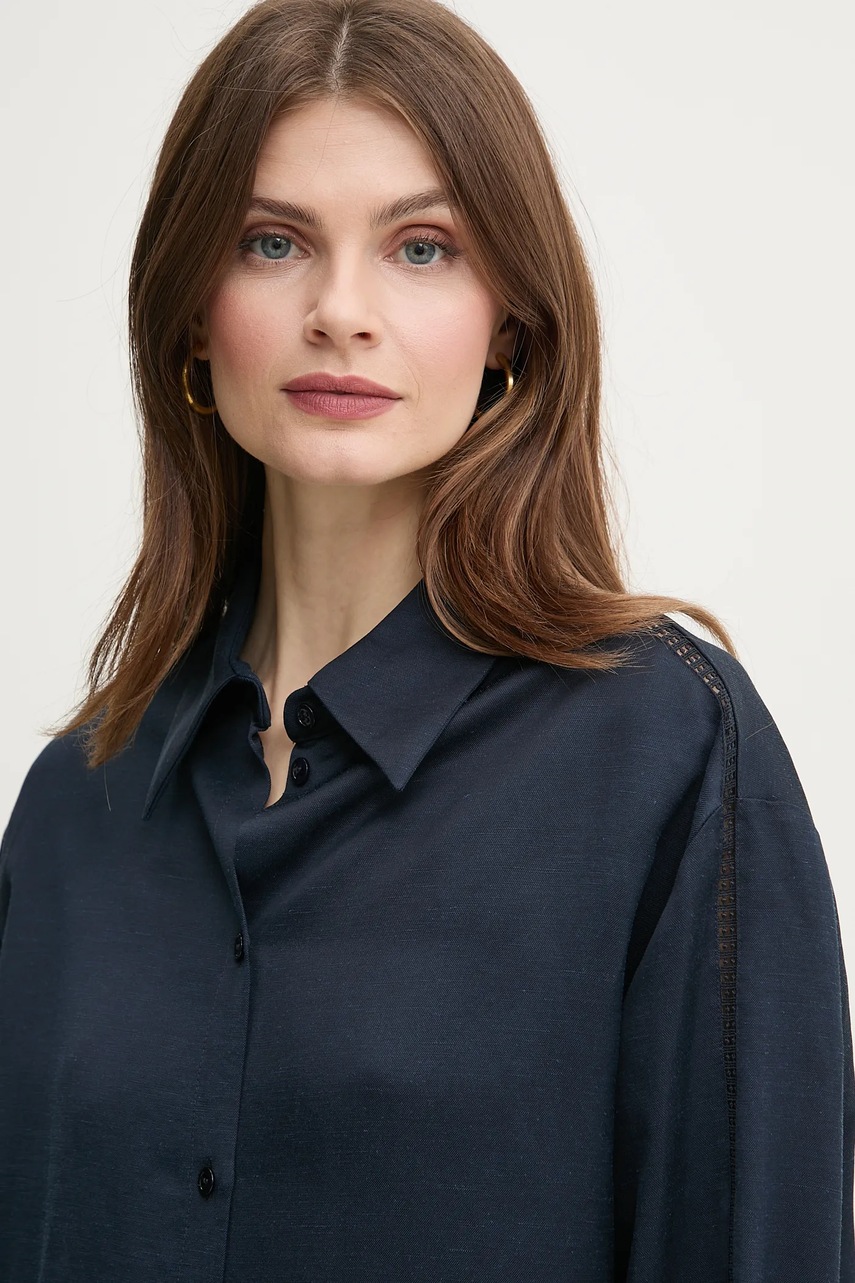 BOSS koszula z domieszką lnu damska kolor granatowy relaxed z kołnierzykiem klasycznym 50535297