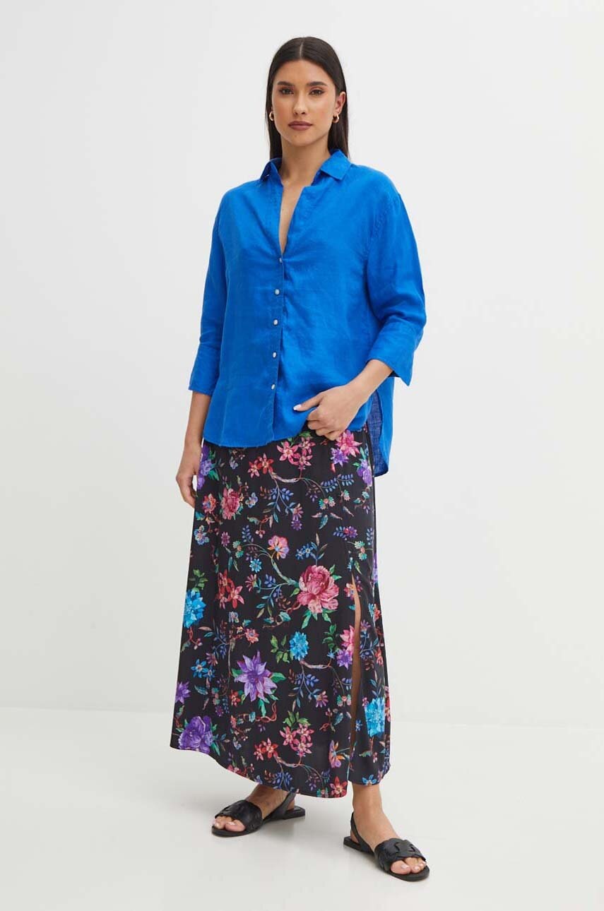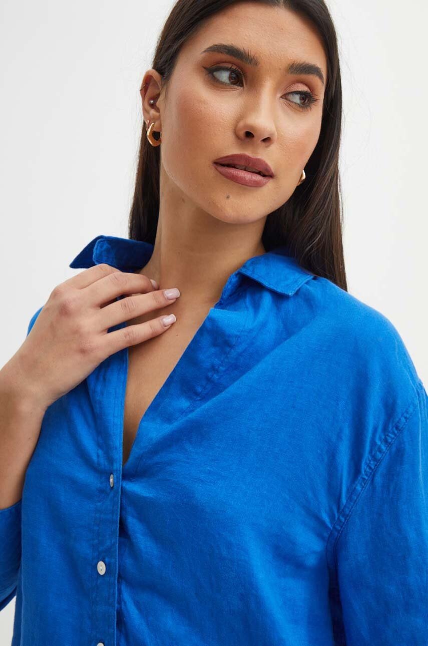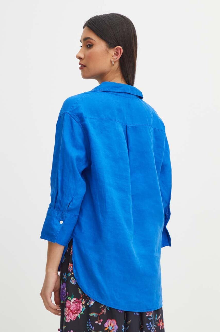 Medicine koszula lniana damska kolor niebieski relaxed z kołnierzykiem klasycznym