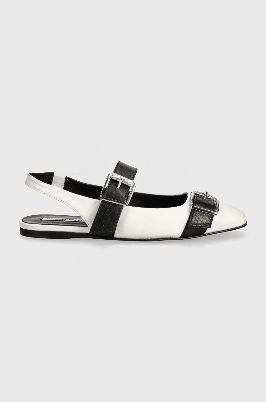 Karl Lagerfeld baleriny skórzane KONNIE kolor biały z odkrytą piętą KL40186