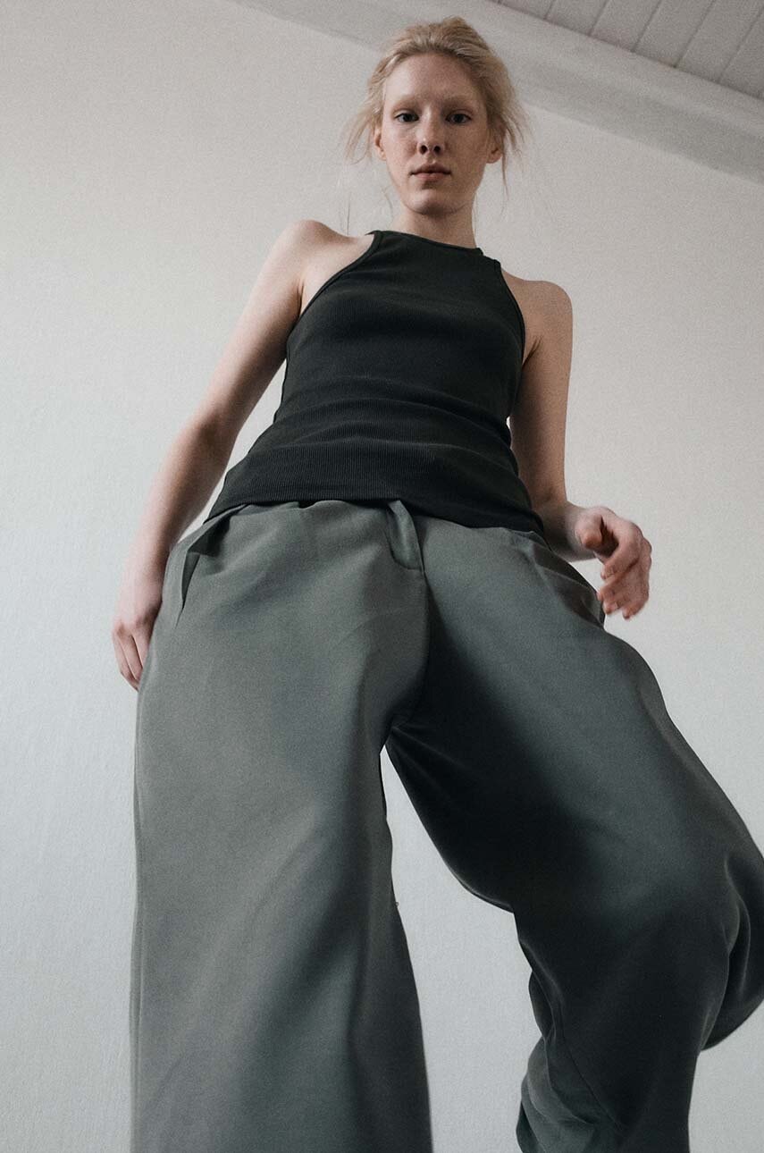 - Model uszyty z wysokogatunkowej, delikatnie prążkowanej bawełny z dodatkiem elastanu.