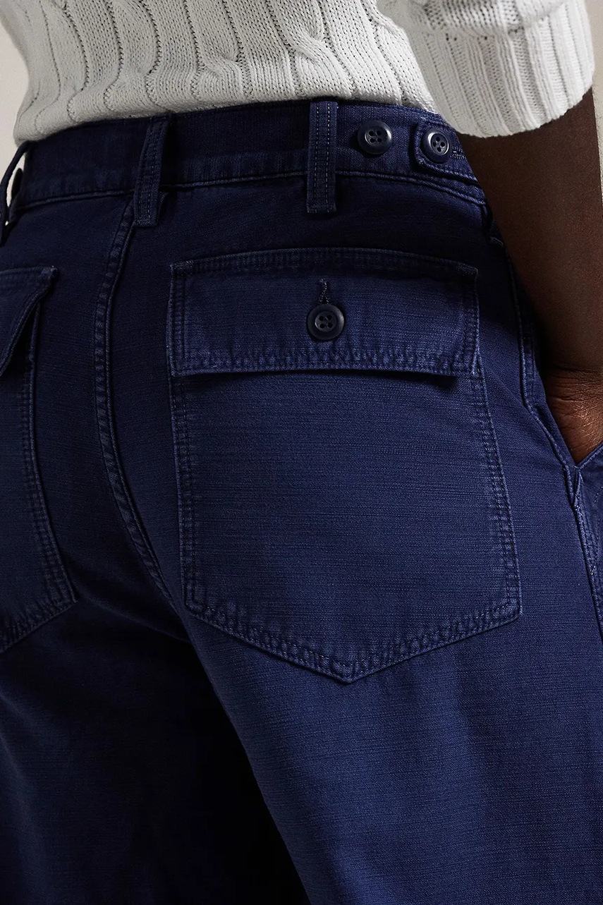 - Model z regularną talią i zapięciem na suwak i guziki.