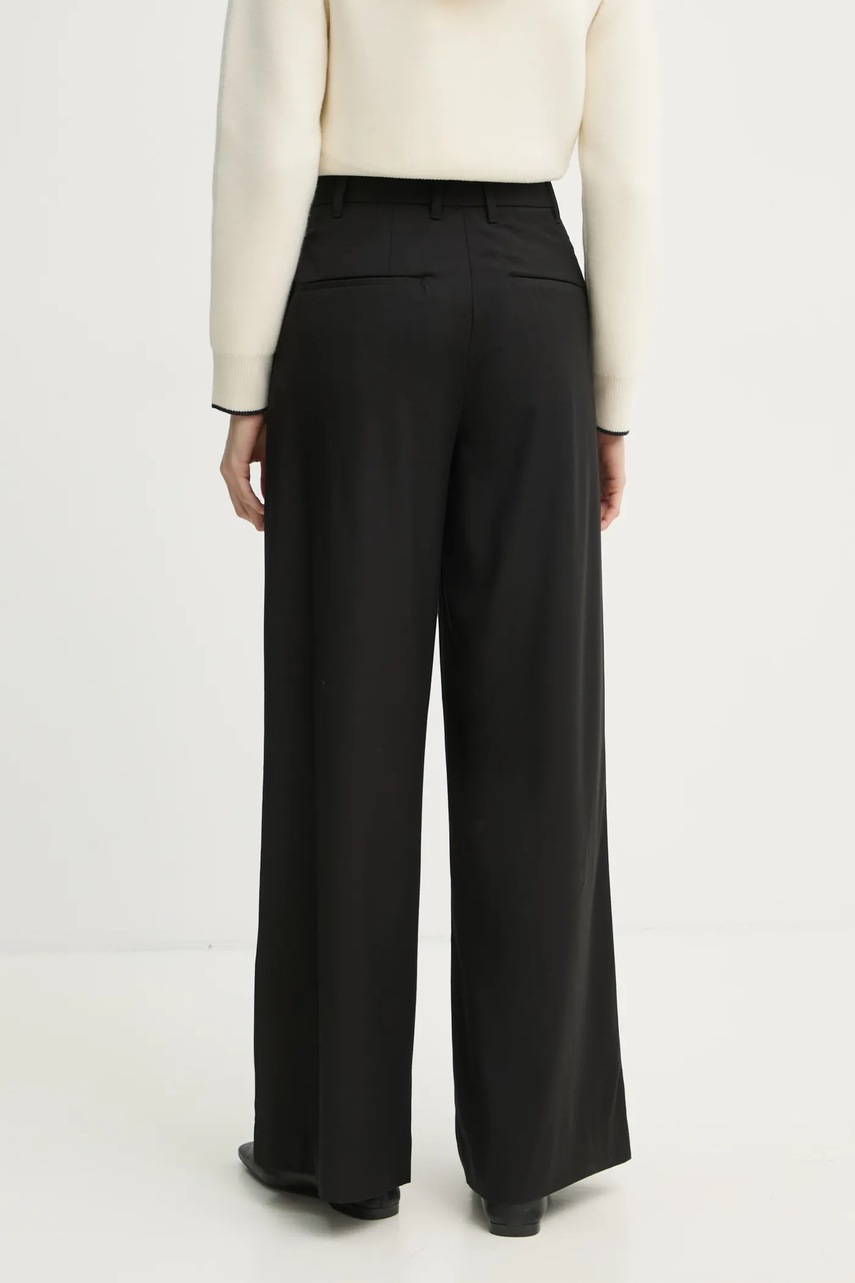 Remain spodnie z domieszką wełny kolor czarny szerokie high waist 502322100