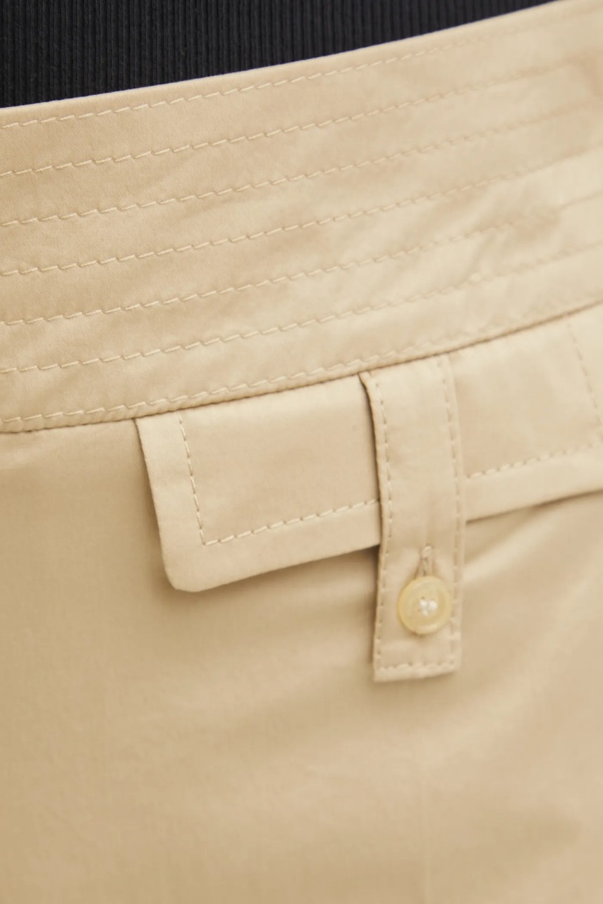 - Model z podwyższoną talią i zapięciem na suwak, guzik i haftki.