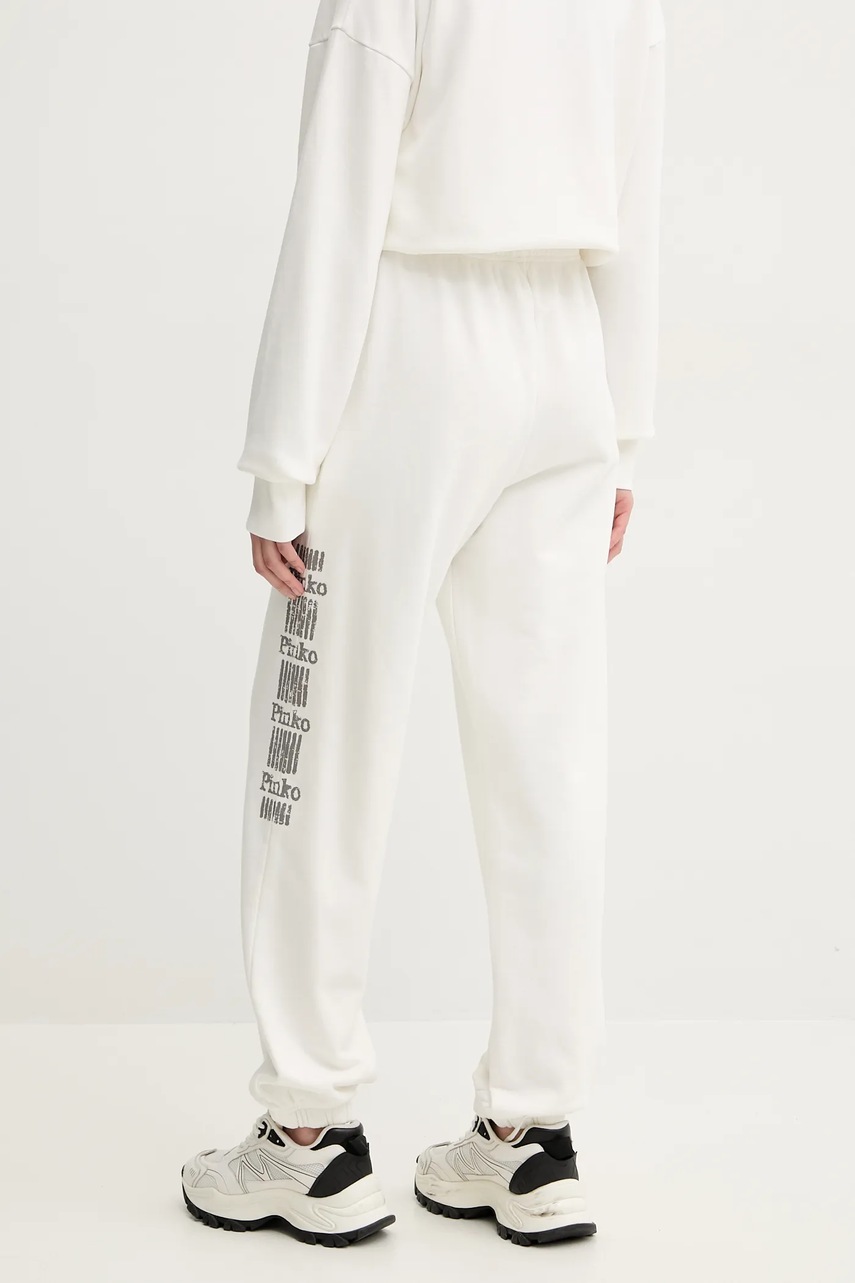 Pinko spodnie dresowe bawełniane damskie kolor biały z nadrukiem 104790 A2CV