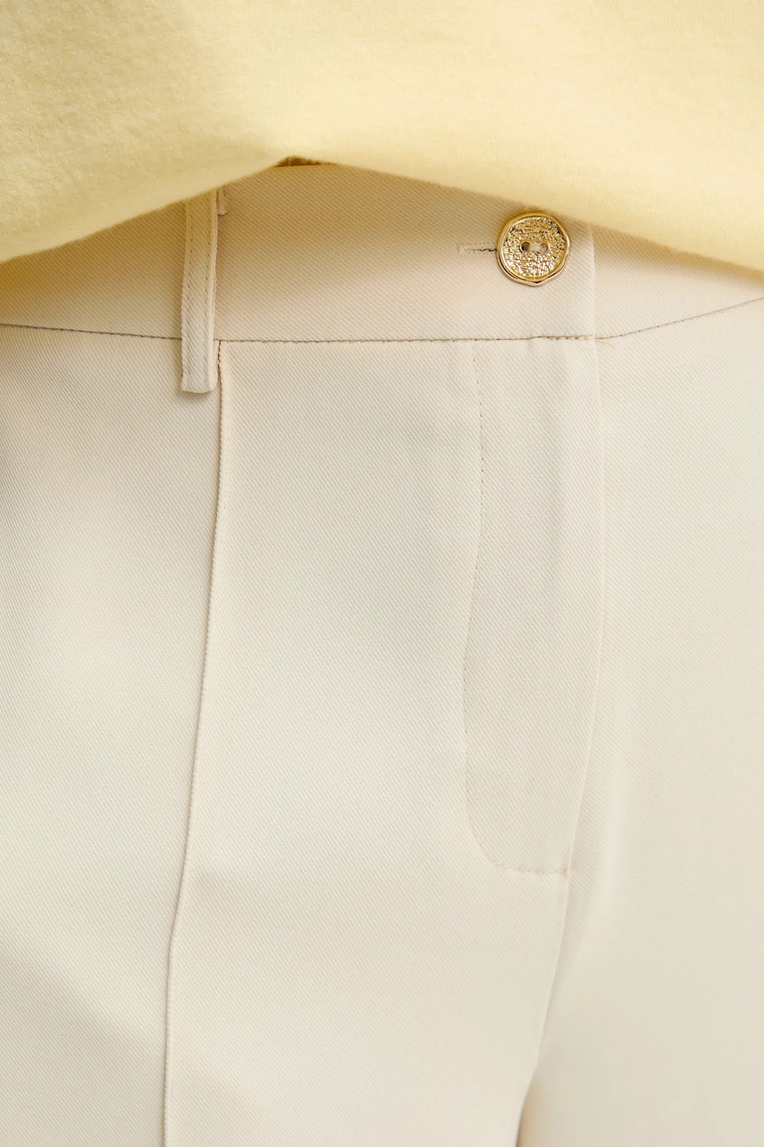 - Model z podwyższoną talią i zapięciem na guzik i suwak.