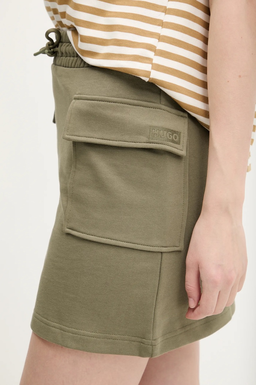 Hugo Blue spódnica bawełniana kolor zielony mini ołówkowa 50537460