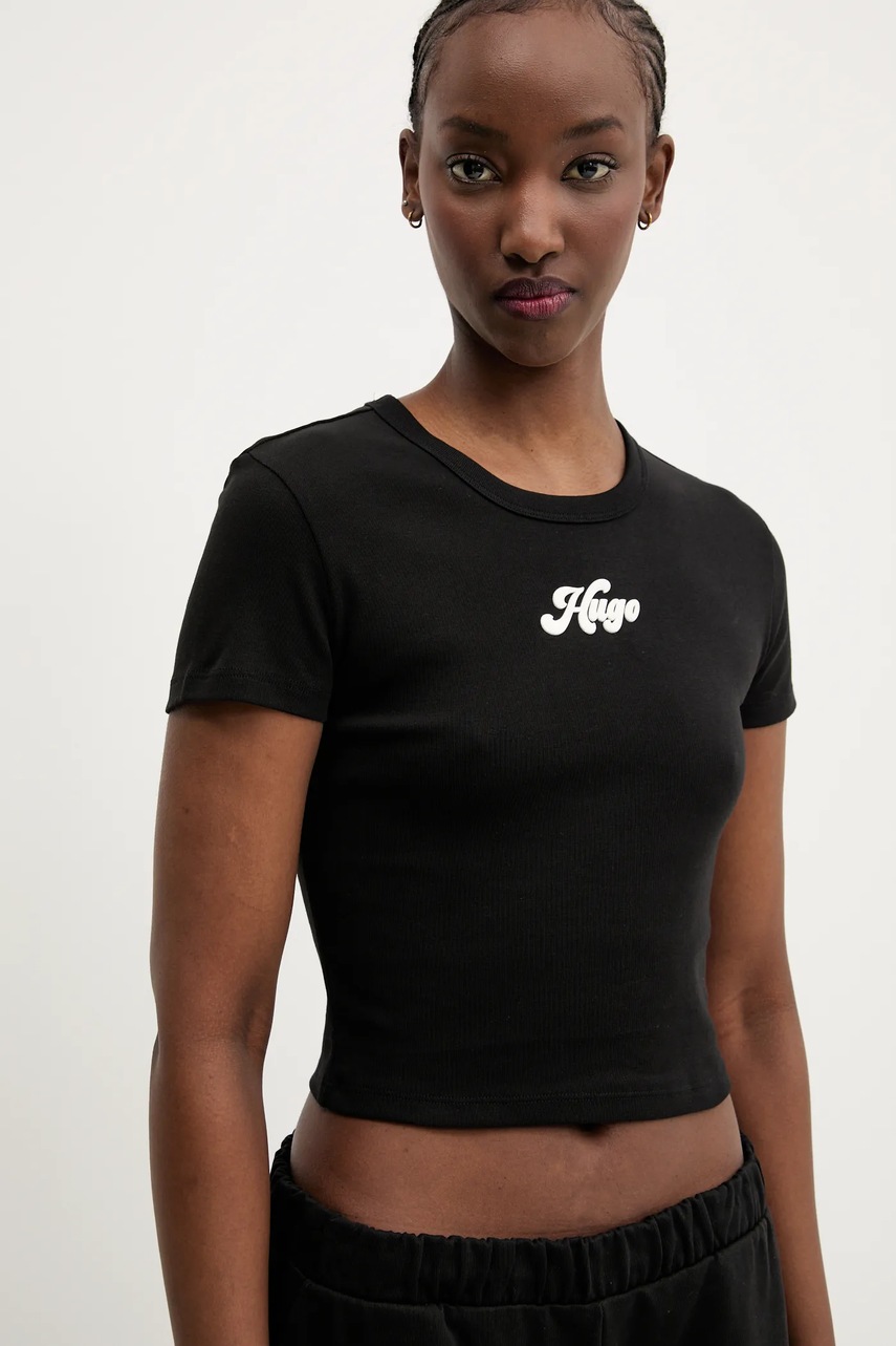 HUGO t-shirt bawełniany damski kolor czarny 50539132