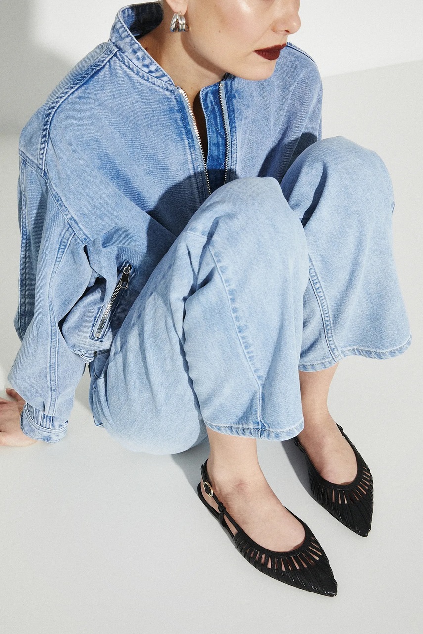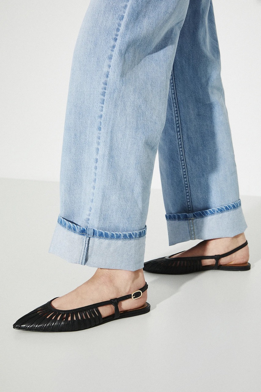 Medicine baleriny skórzane kolor czarny z odkrytą piętą