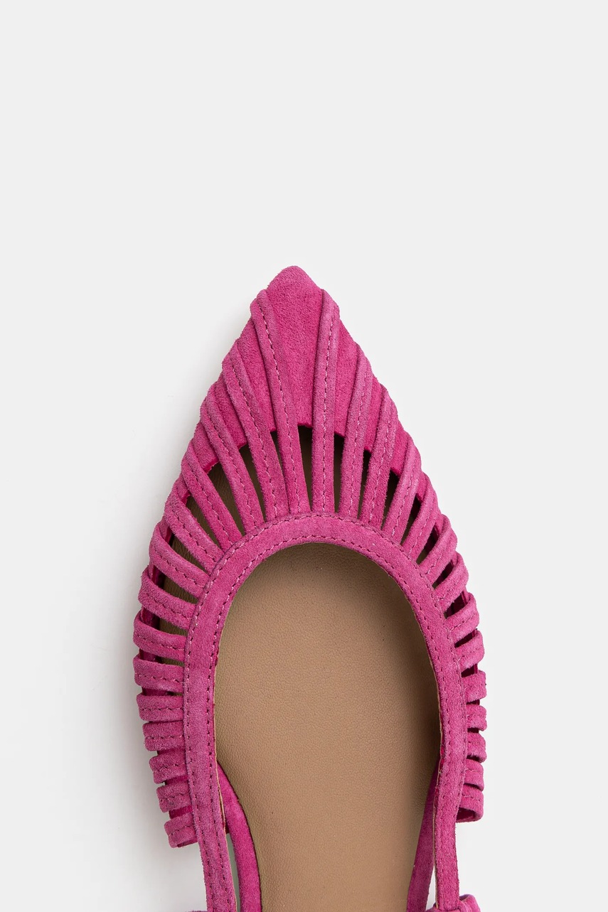 Medicine baleriny zamszowe kolor różowy z odkrytą piętą