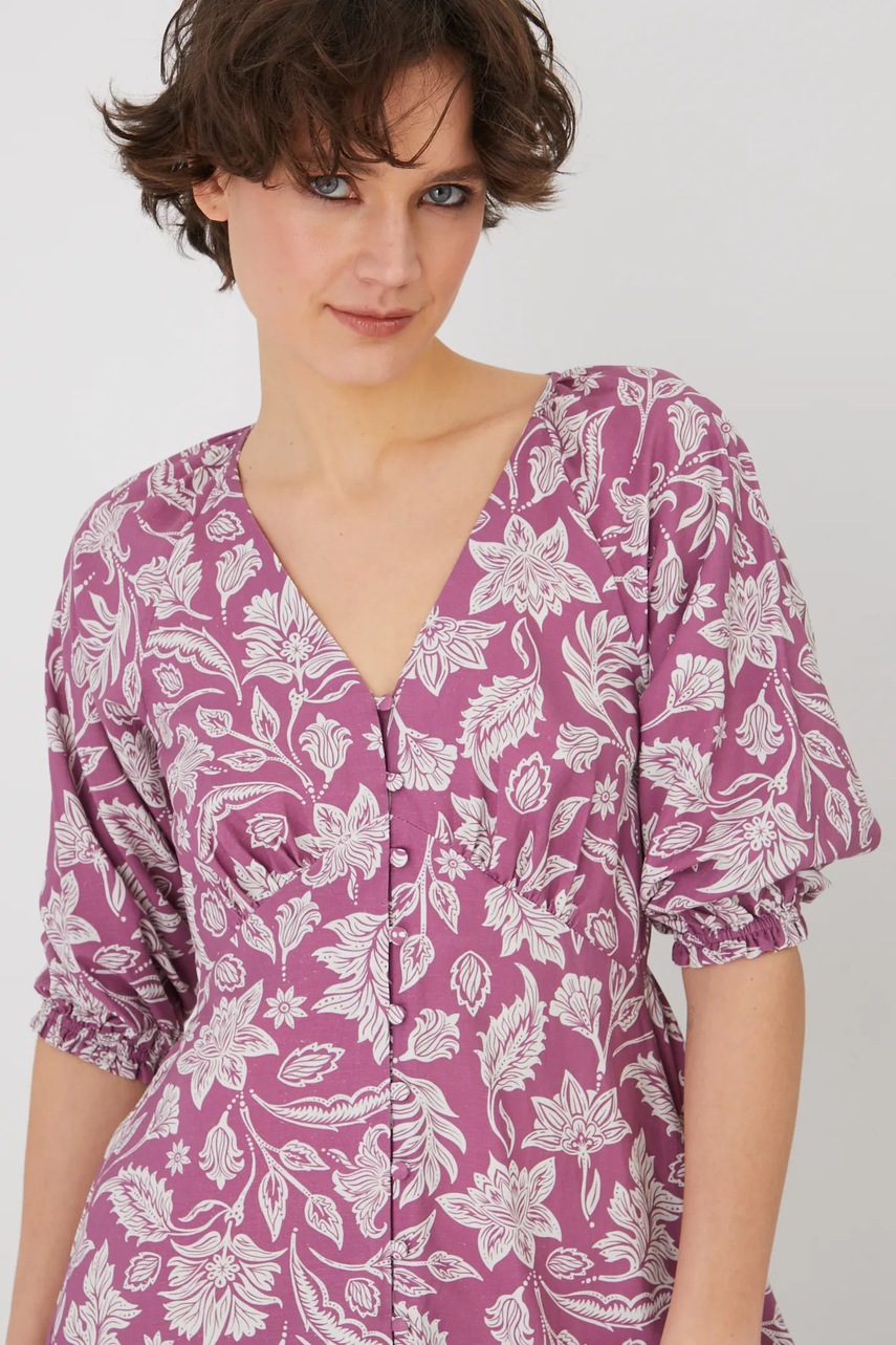 Medicine sukienka z domieszką lnu kolor różowy midi rozkloszowana