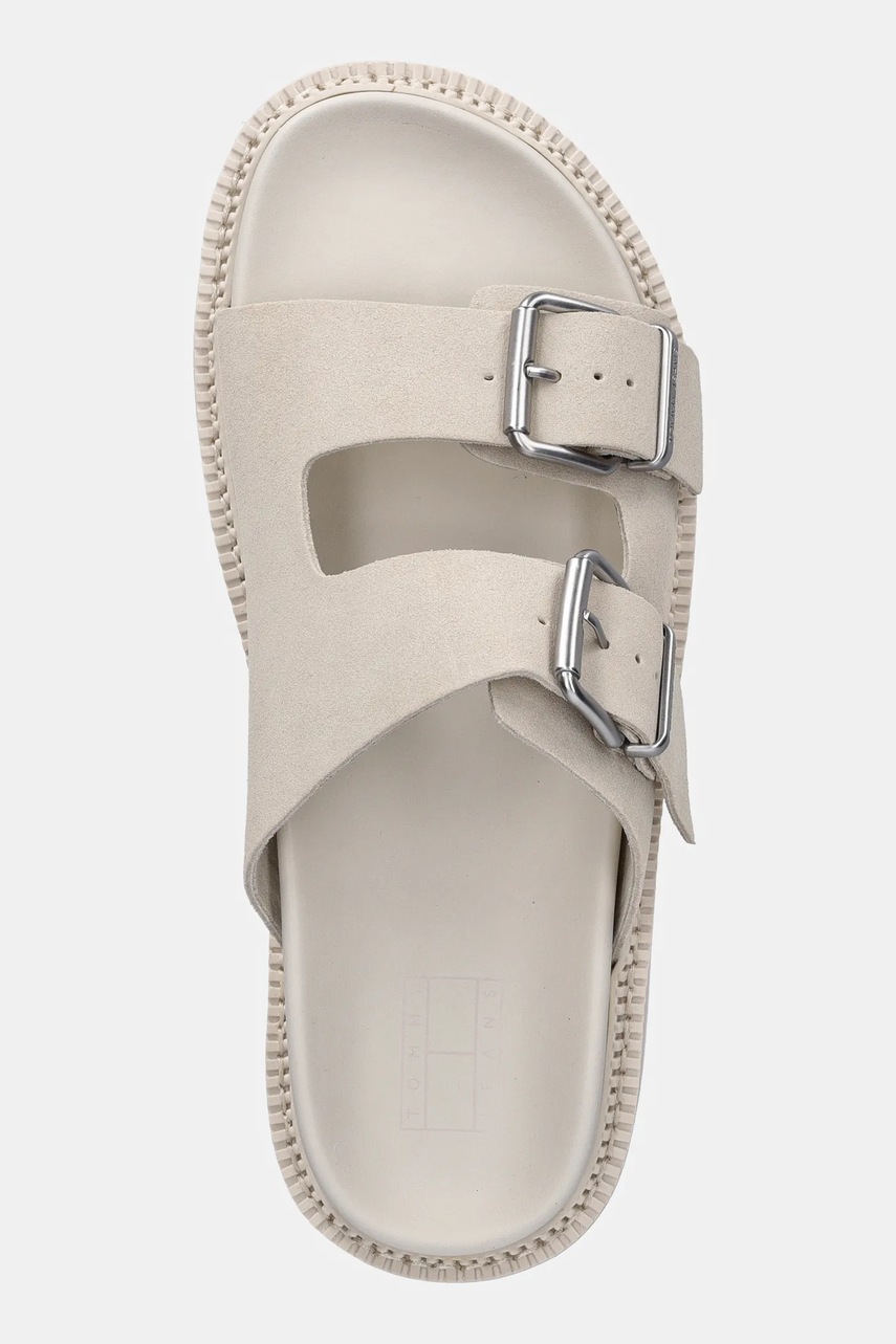 Tommy Jeans klapki zamszowe DOUBLE STRAP SANDAL SUEDE damskie kolor beżowy na platformie EN0EN02797