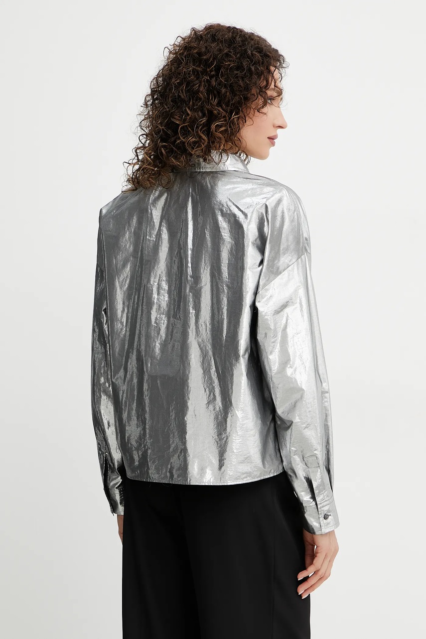 Weekend Max Mara koszula damska kolor srebrny relaxed z kołnierzykiem klasycznym 2515111061600
