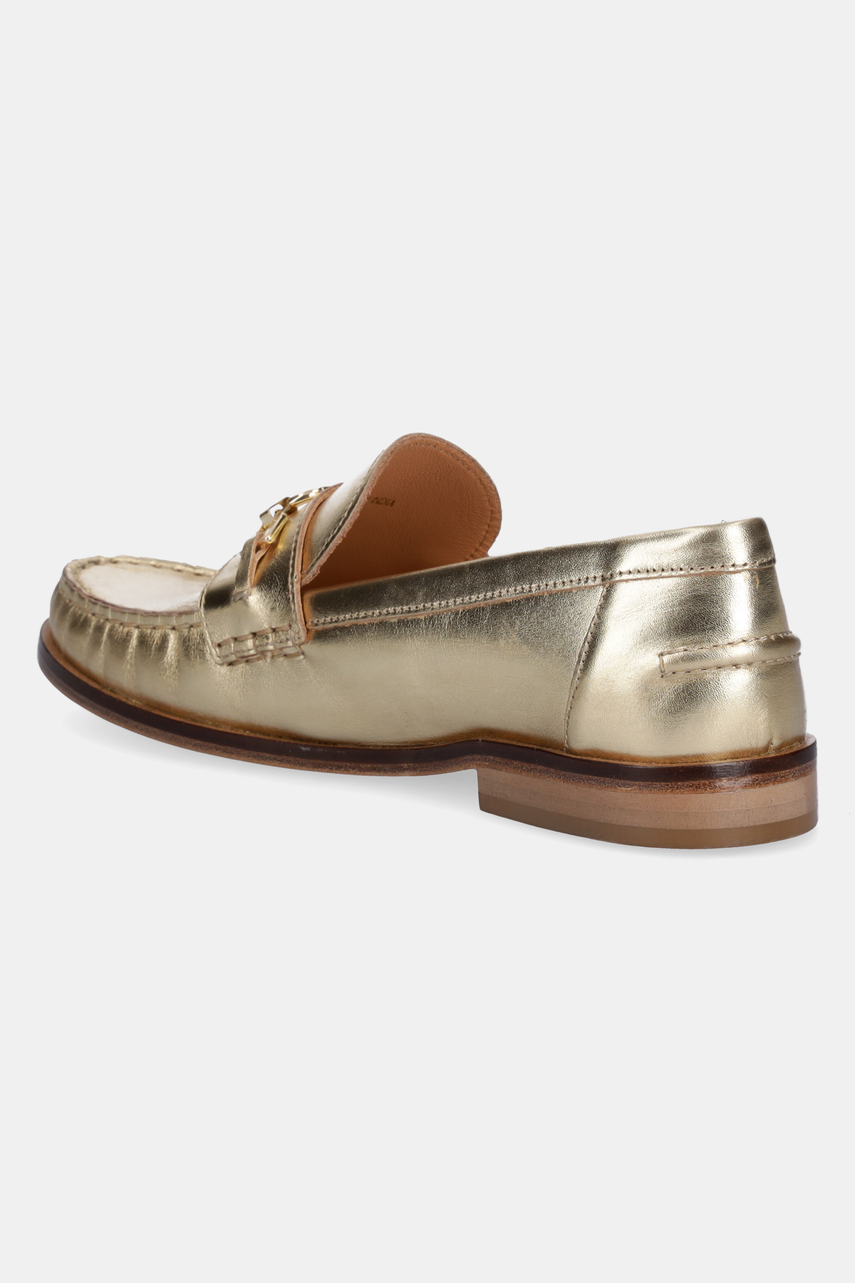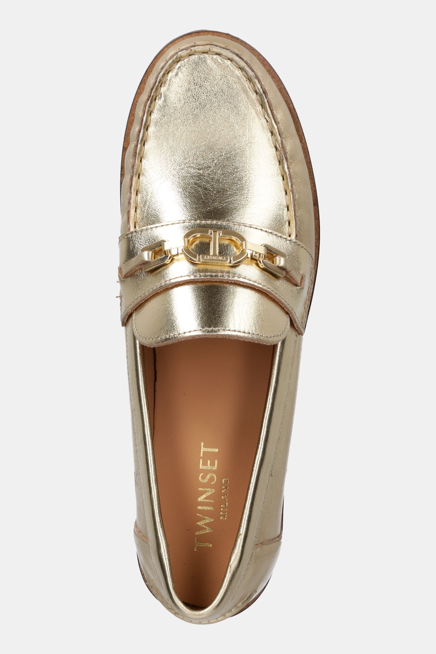 Twinset mokasyny skórzane damskie kolor złoty na płaskim obcasie 251TCP130