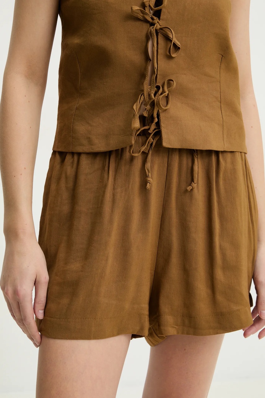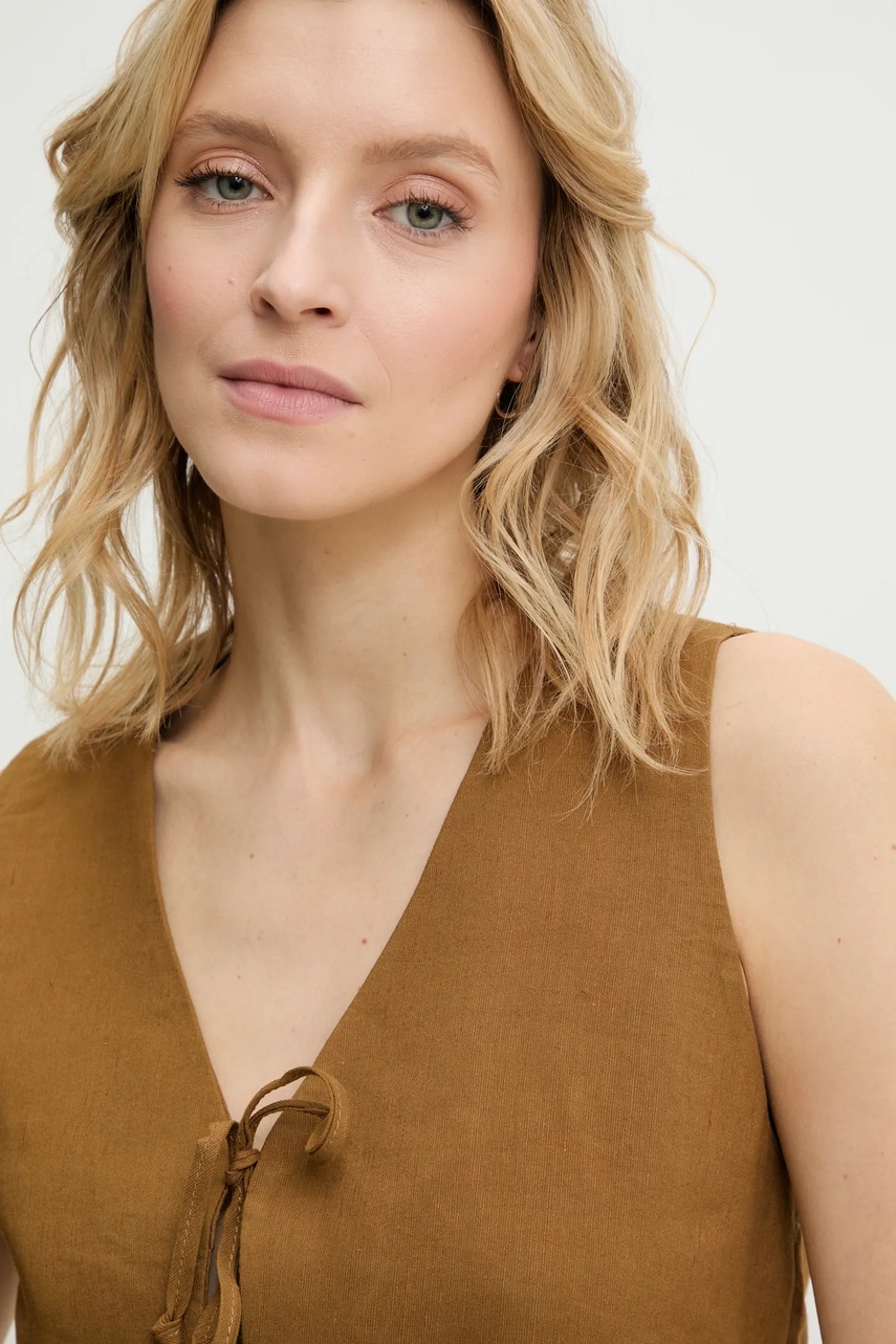 Answear.LAB kamizelka i szorty lniane damski kolor brązowy