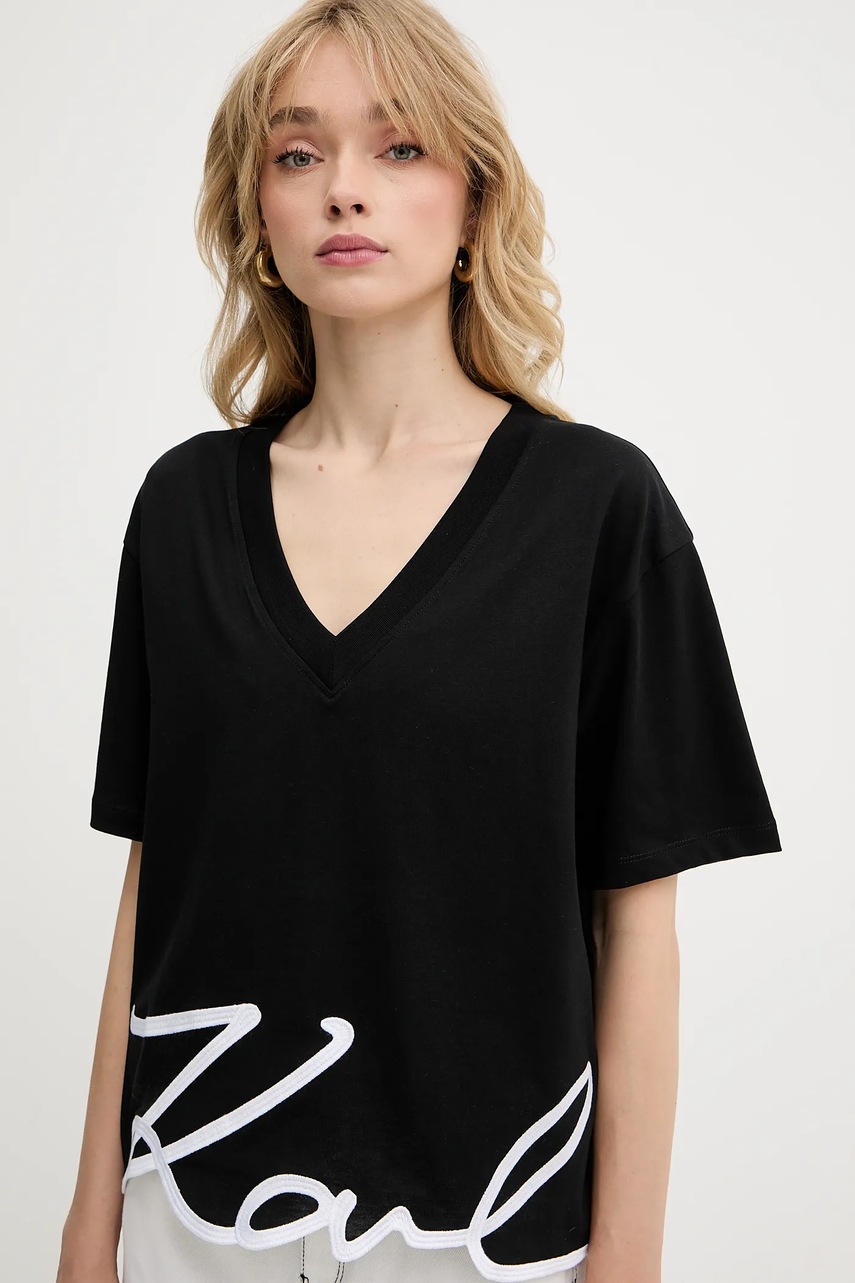 Karl Lagerfeld t-shirt bawełniany damski kolor czarny A2W17104