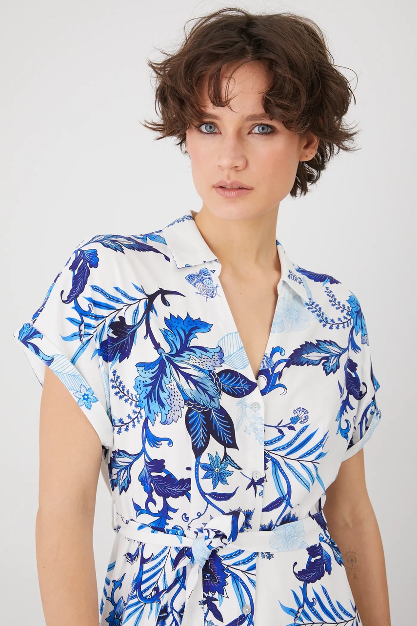 - Spiczasty dekolt z kołnierzykiem.