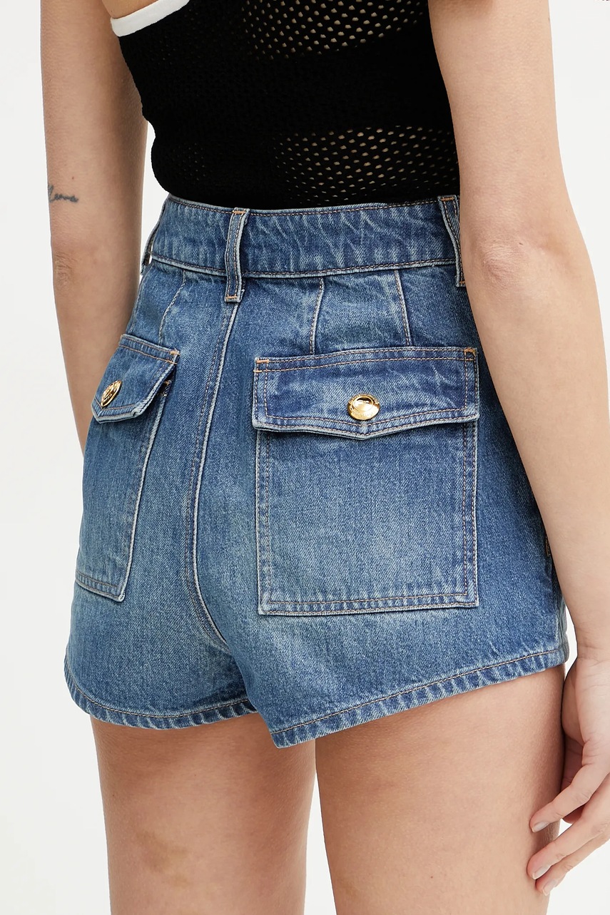 Elisabetta Franchi szorty jeansowe damskie kolor niebieski gładkie high waist HJ35I51E2