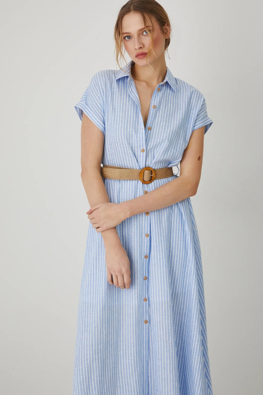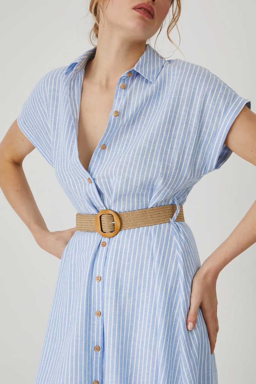 Medicine sukienka lniana kolor niebieski midi rozkloszowana
