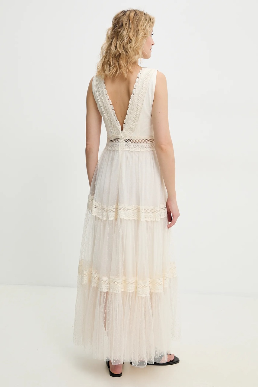 Answear.LAB sukienka kolor beżowy maxi rozkloszowana
