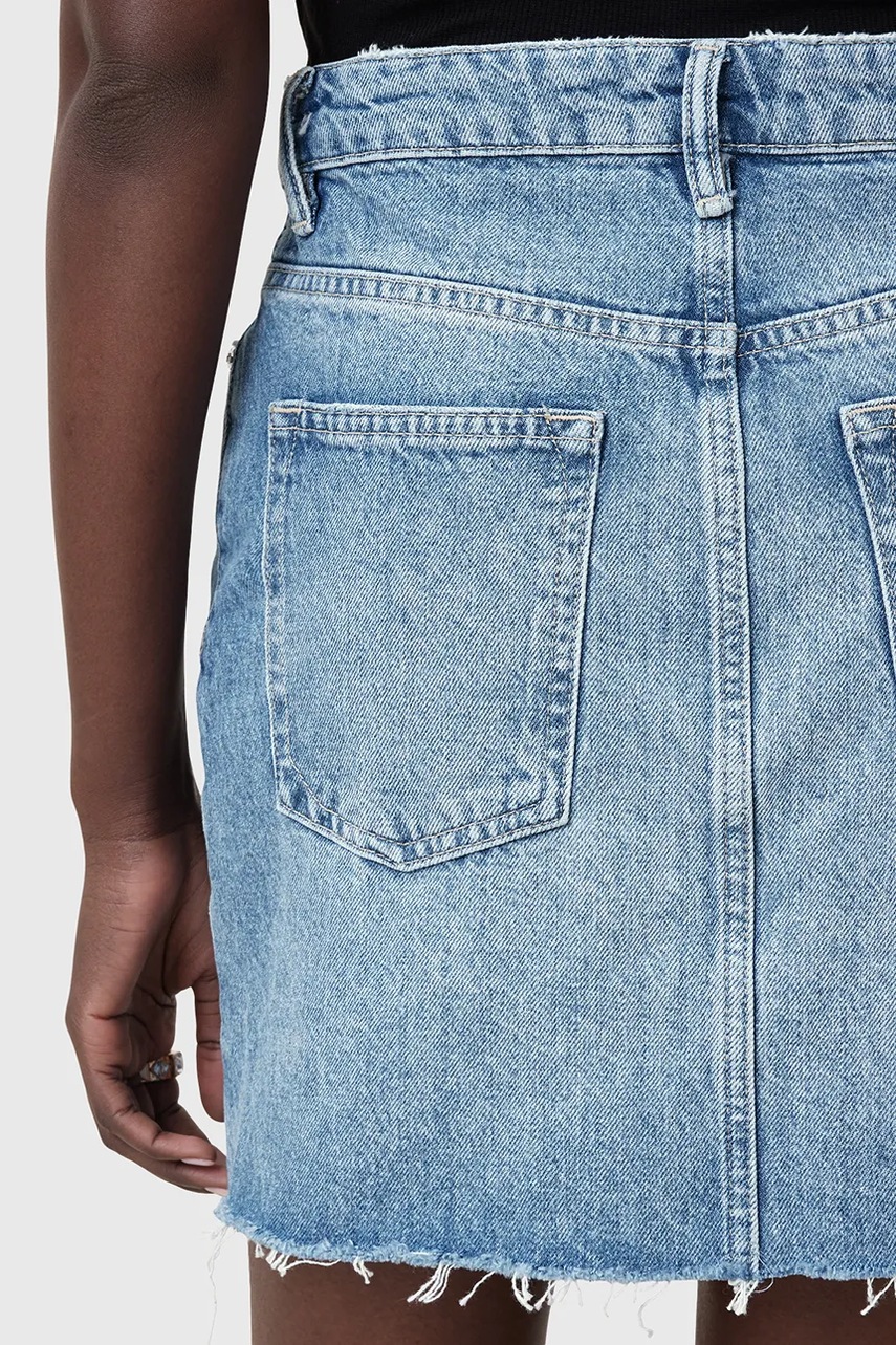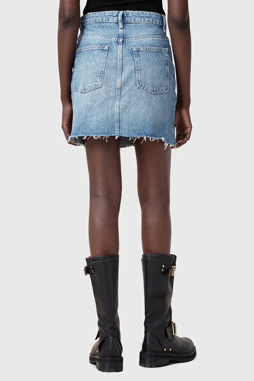 AllSaints spódnica jeansowa AKI CROSSOVER kolor niebieski mini prosta W006RC