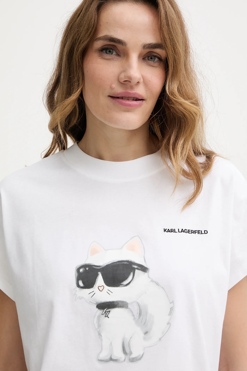 Karl Lagerfeld t-shirt bawełniany IKON AQUARELLE damski kolor biały A2W17115