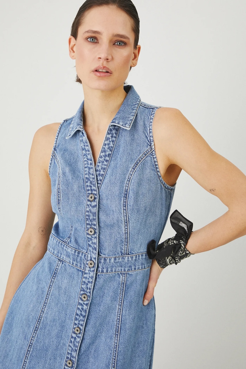 Medicine sukienka jeansowa kolor niebieski maxi rozkloszowana