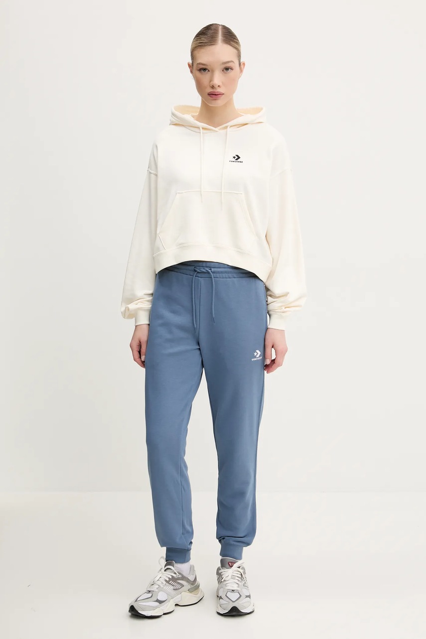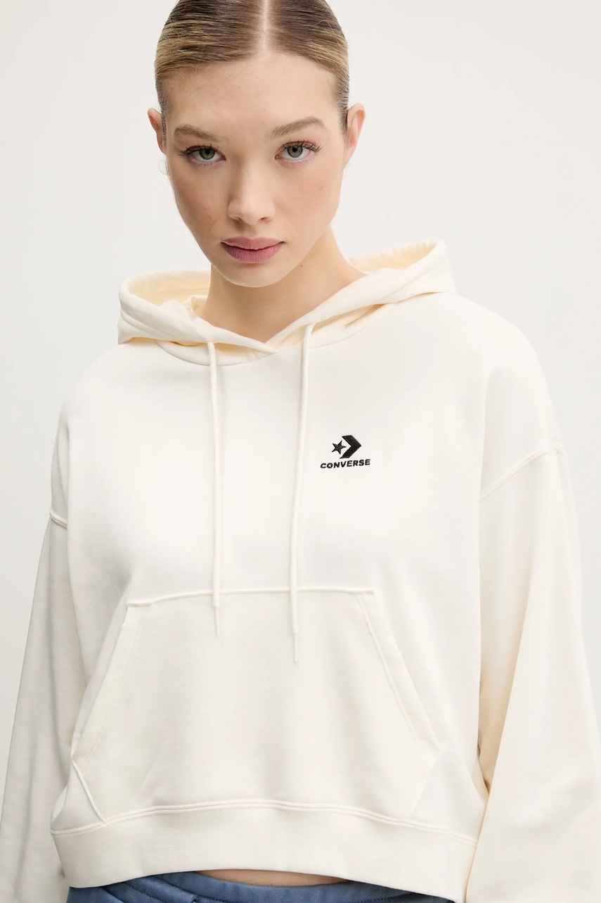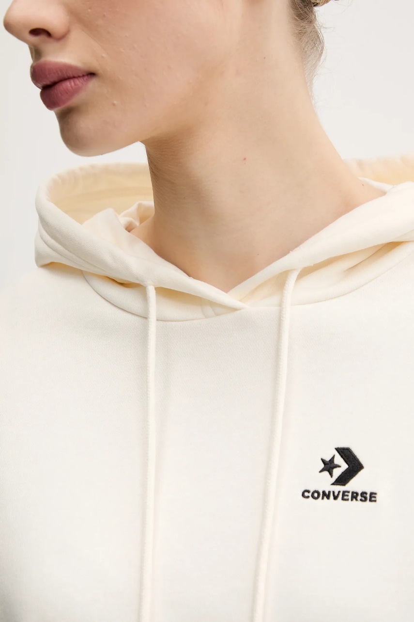 Converse bluza damska kolor beżowy z kapturem z aplikacją 10027616-A02