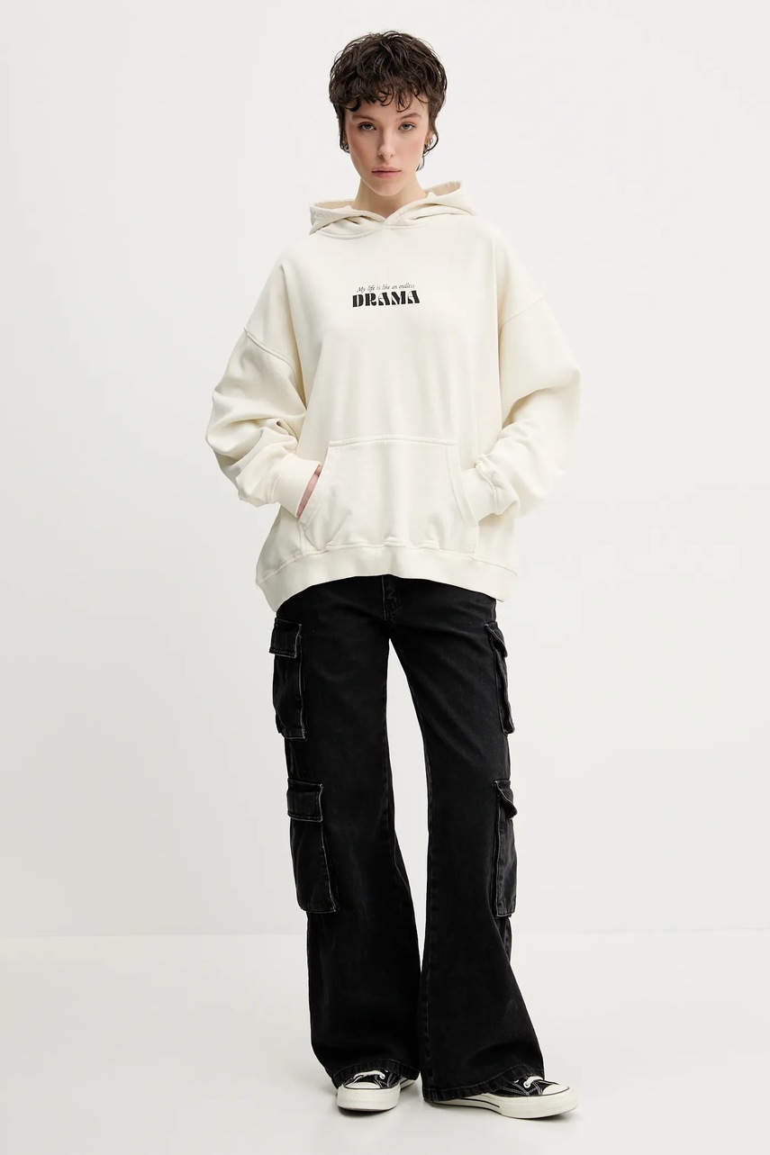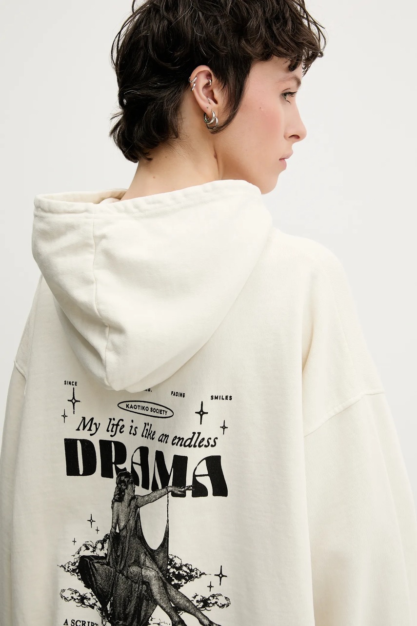 Kaotiko bluza bawełniana kolor beżowy z kapturem z nadrukiem AQ010-01-G002