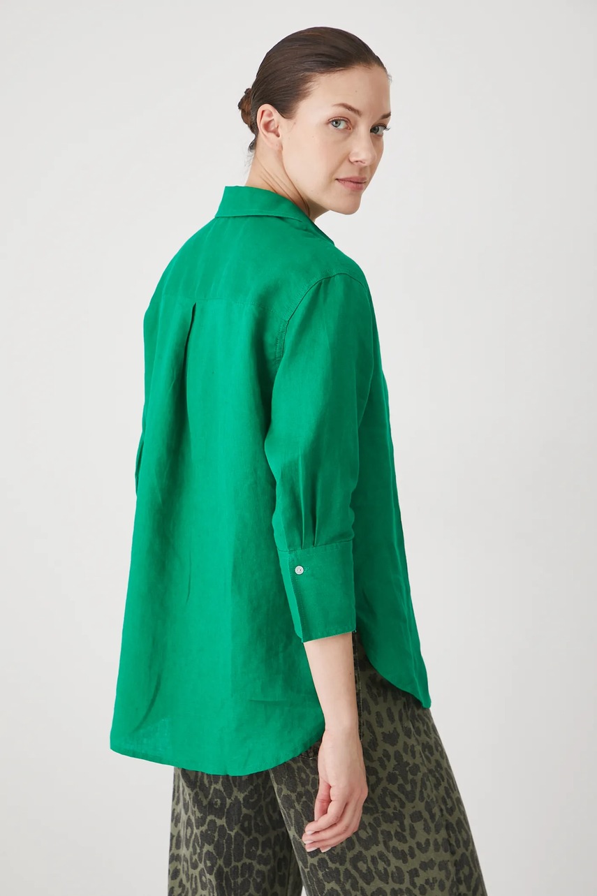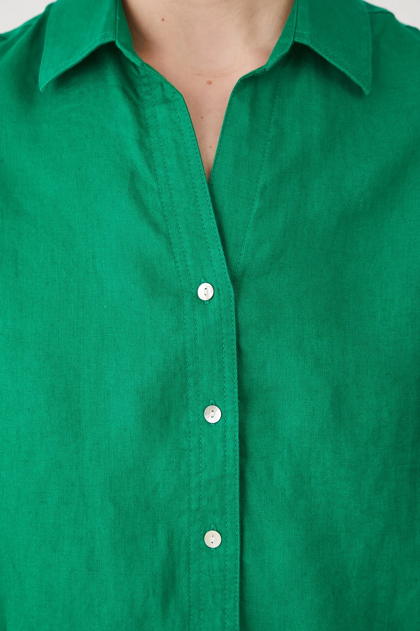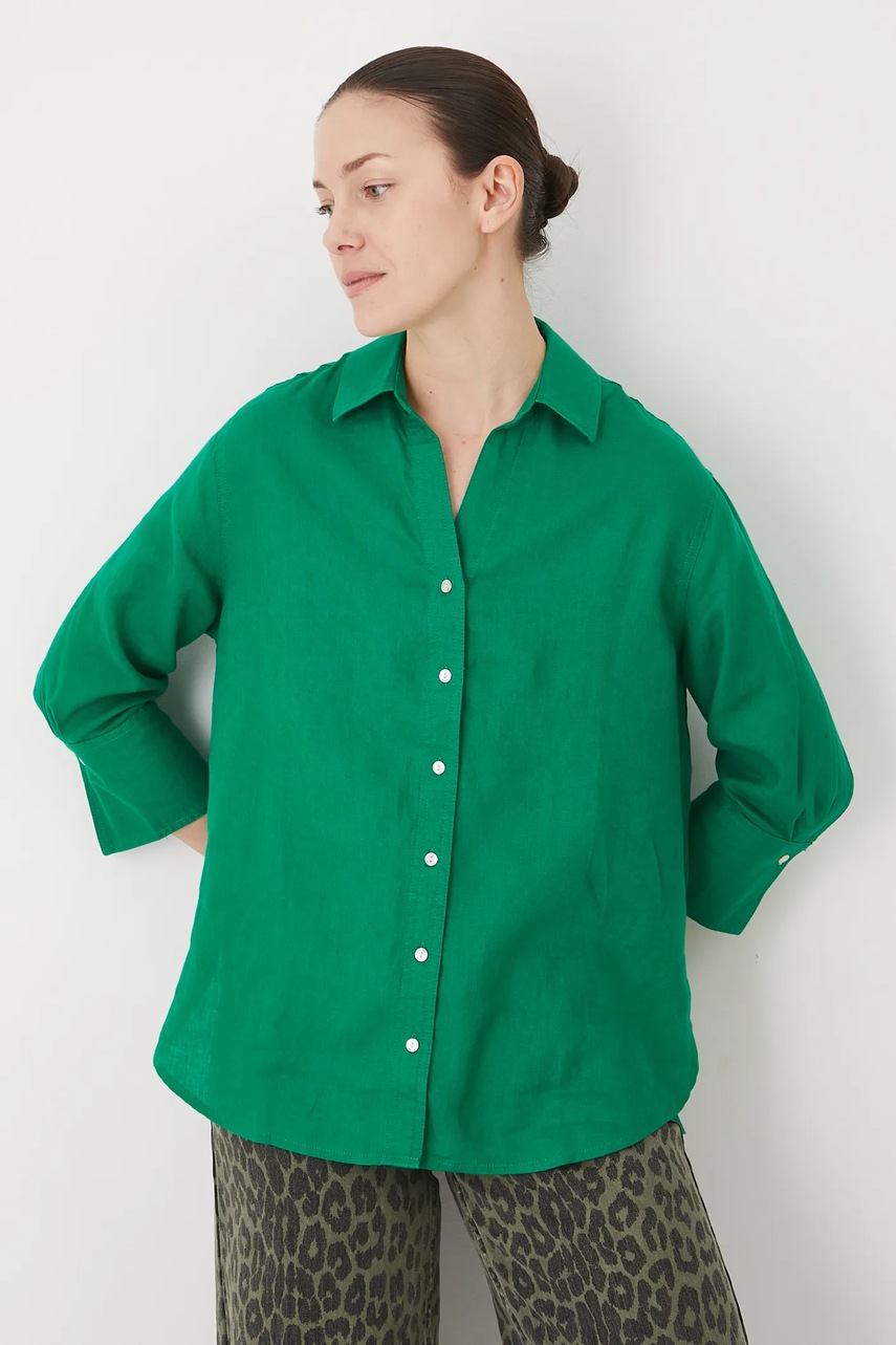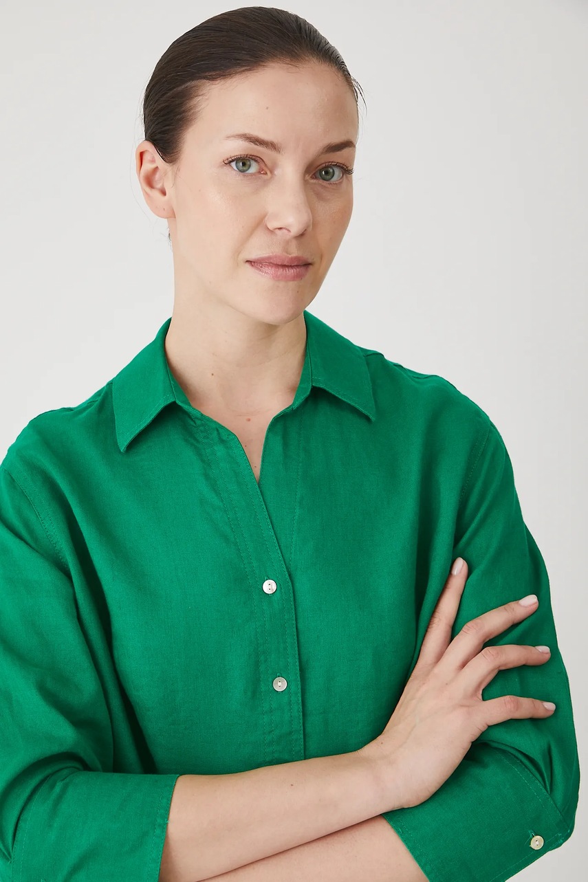 Medicine koszula lniana damska kolor zielony relaxed z kołnierzykiem klasycznym