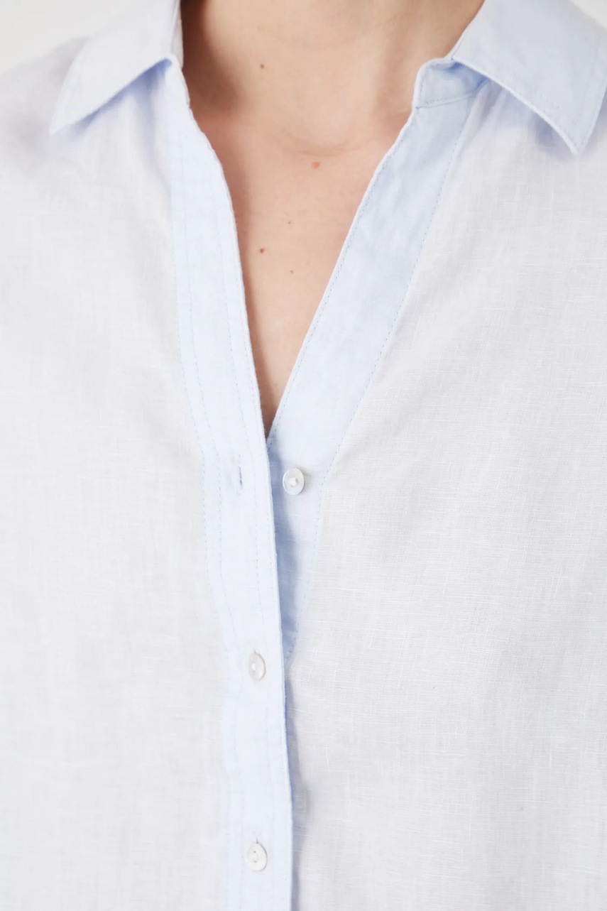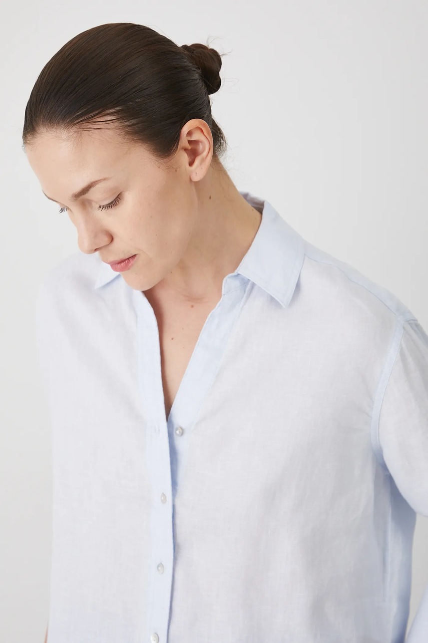 Medicine koszula lniana damska kolor niebieski relaxed z kołnierzykiem klasycznym