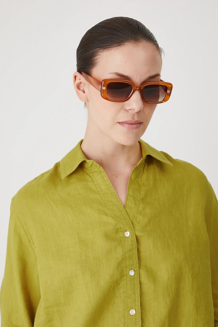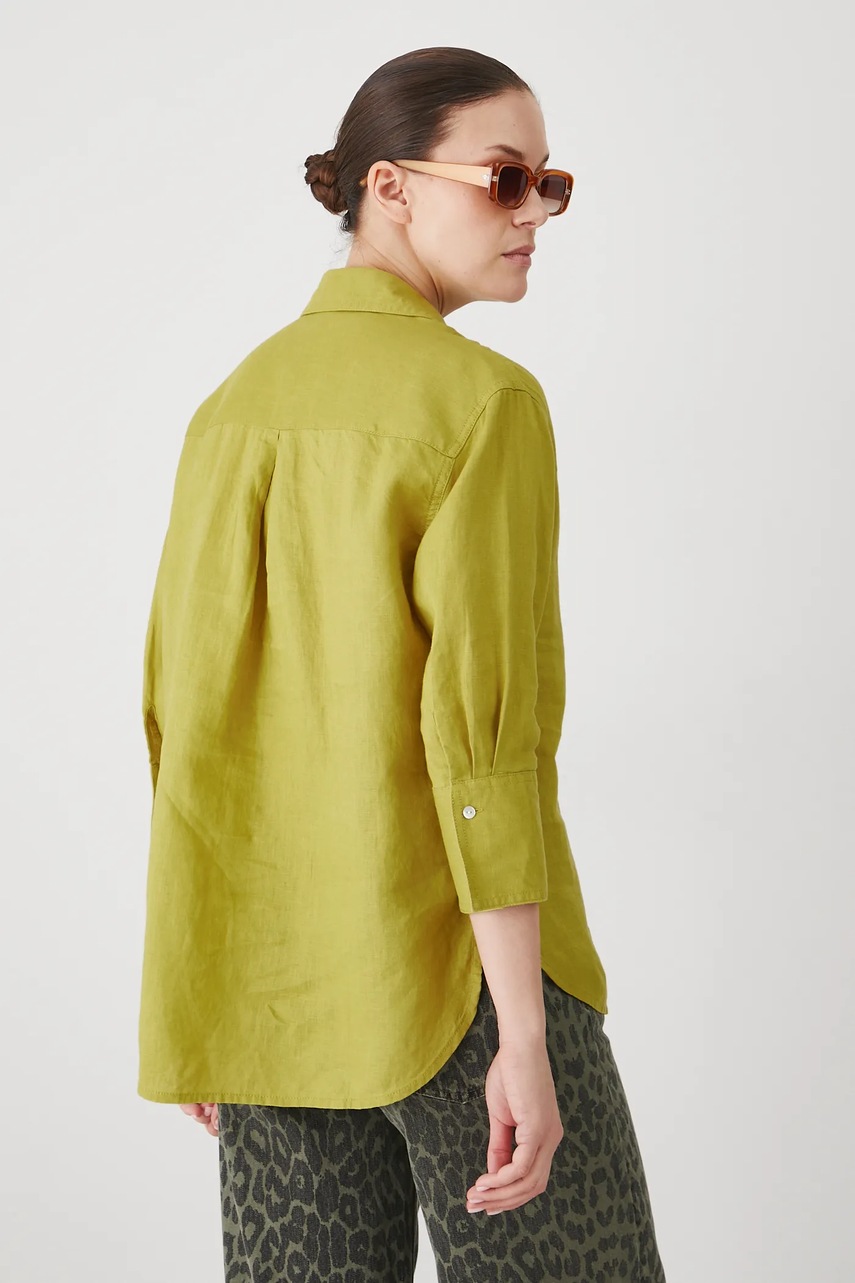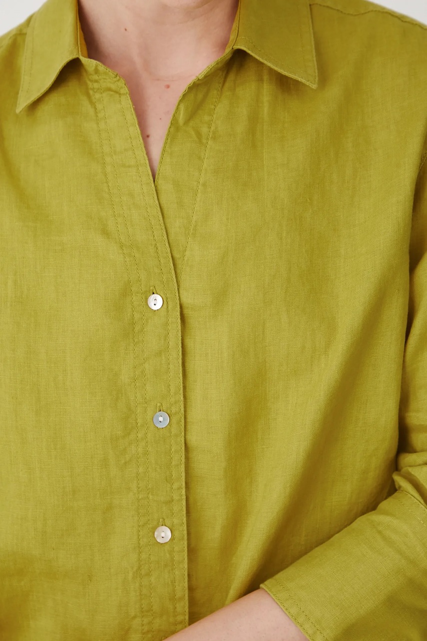 Medicine koszula lniana damska kolor zielony relaxed z kołnierzykiem klasycznym