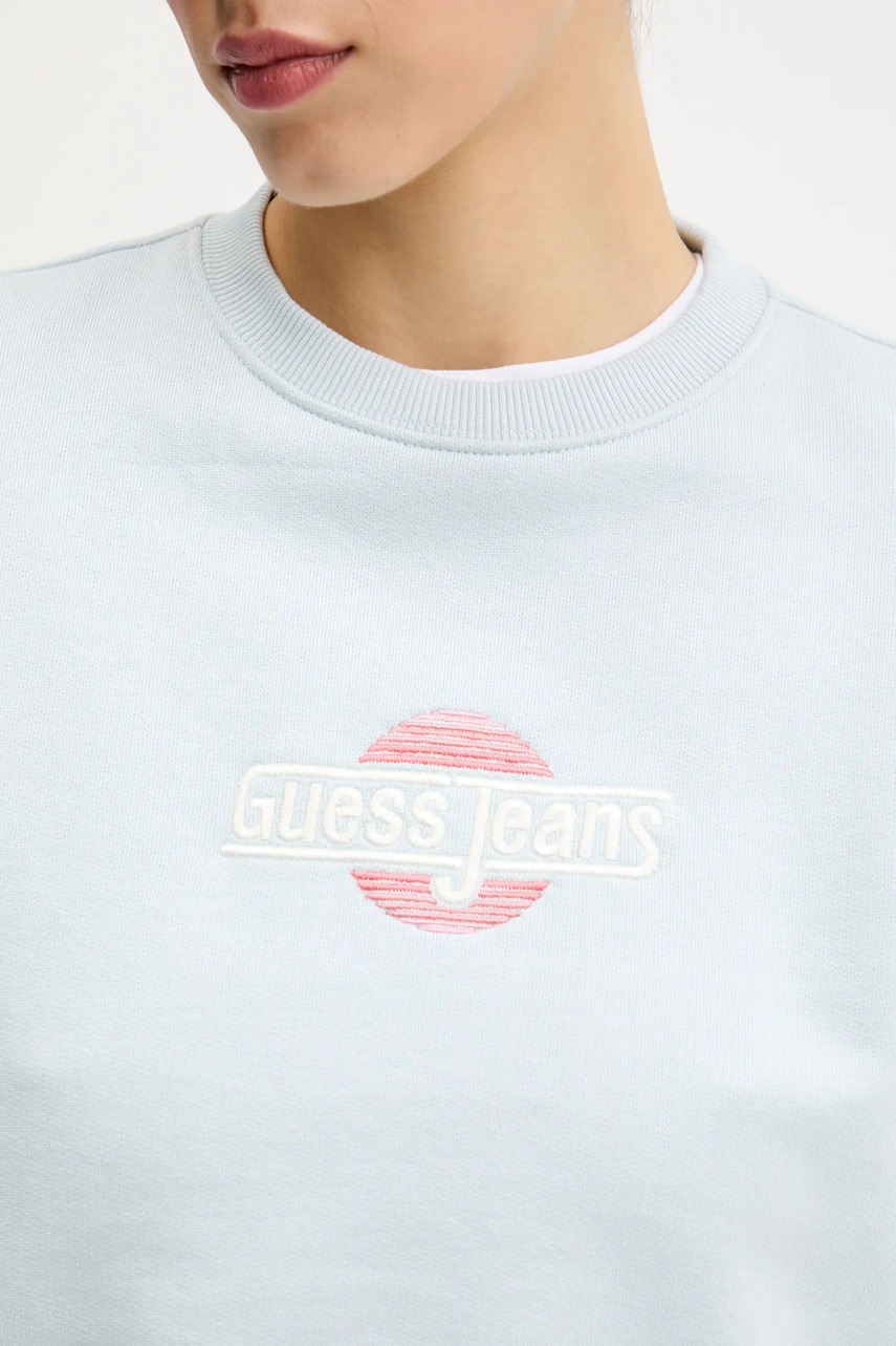Guess Jeans bluza bawełniana damska kolor niebieski z aplikacją W5GQ20 K68I4
