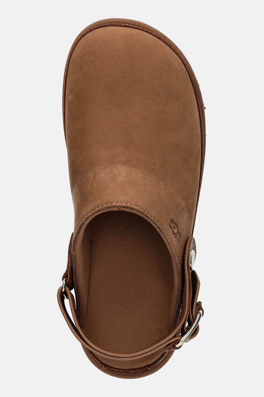UGG klapki nubukowe Goldenstar Villa Clog damskie kolor brązowy na platformie 1169590-CHE