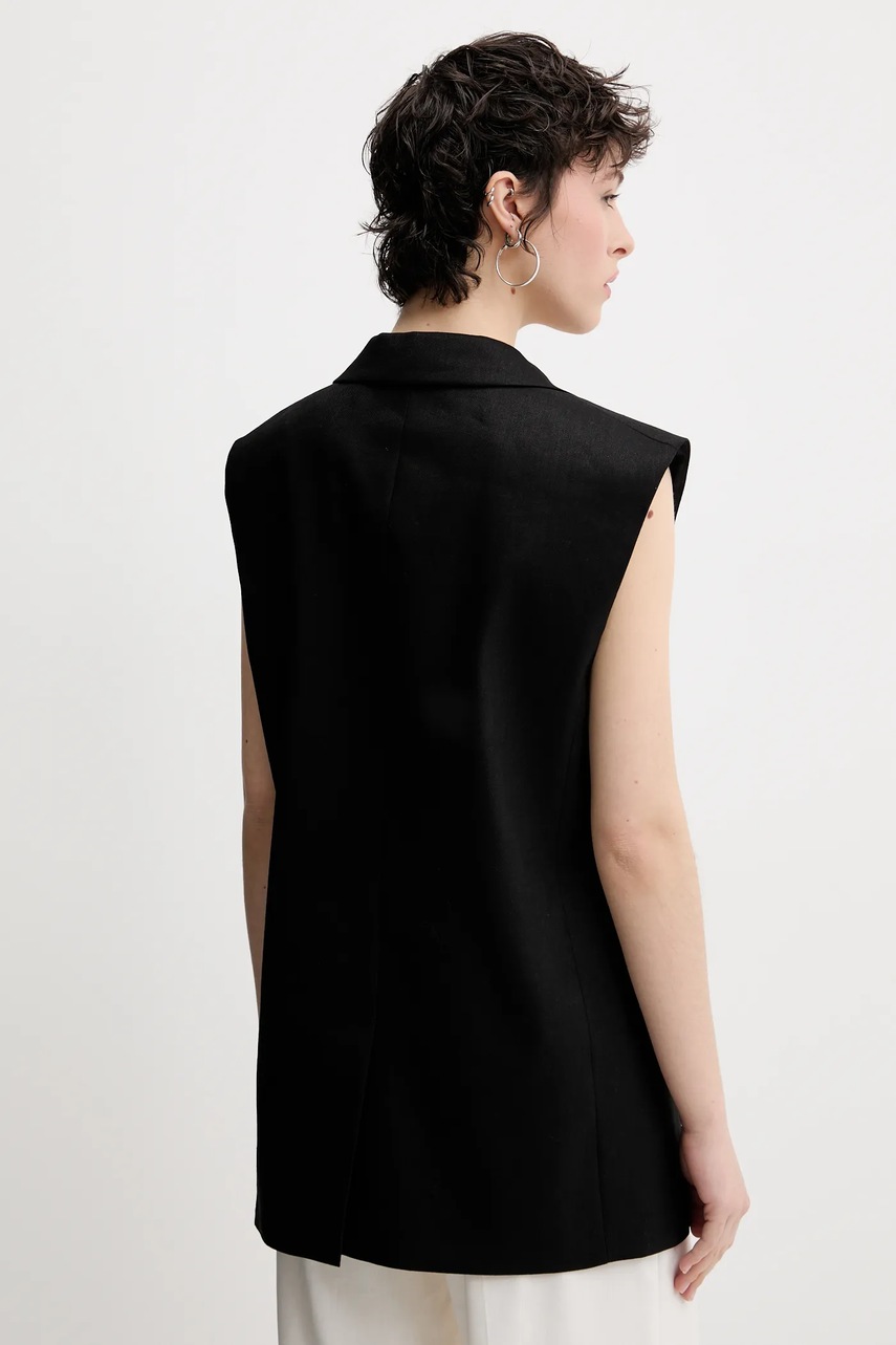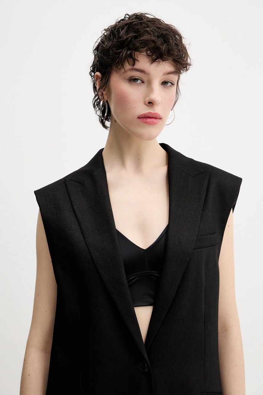 HUGO kamizelka lniana kolor czarny jednorzędowa 50537621