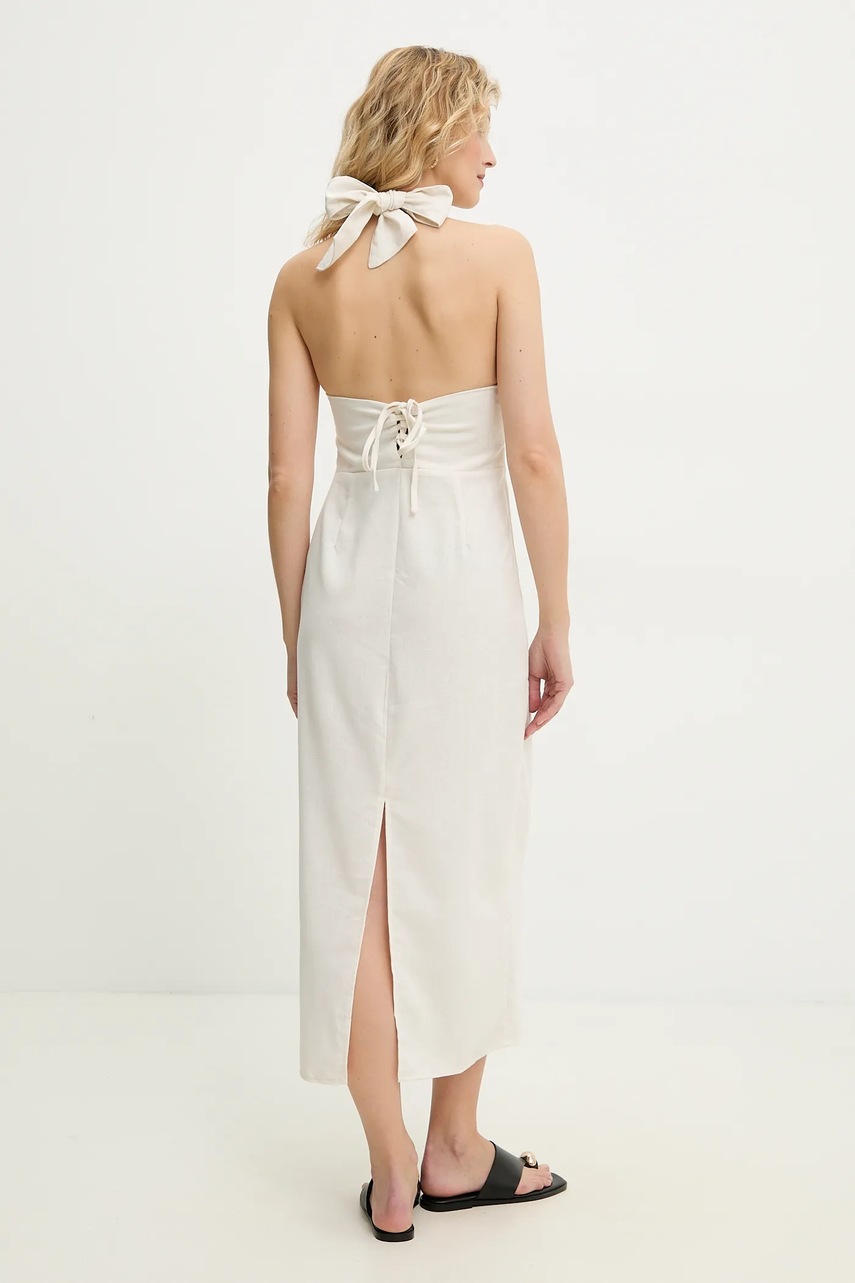 Answear.LAB sukienka z lnem kolor beżowy midi rozkloszowana