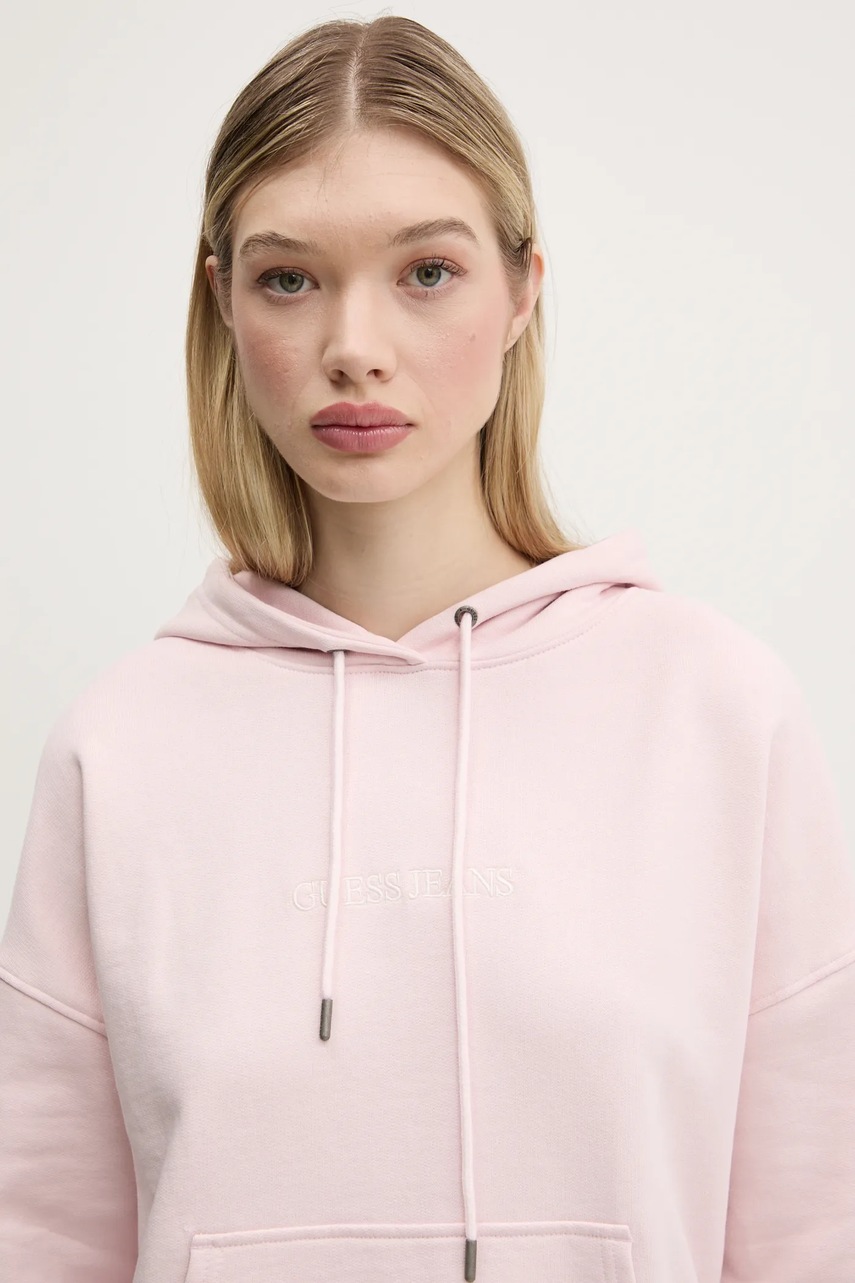 Guess Jeans bluza bawełniana damska kolor różowy z kapturem W5RQ27 K68I4