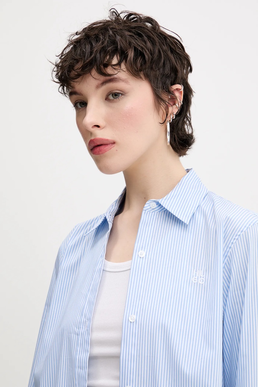 HUGO koszula damska kolor niebieski regular z kołnierzykiem klasycznym 50539864