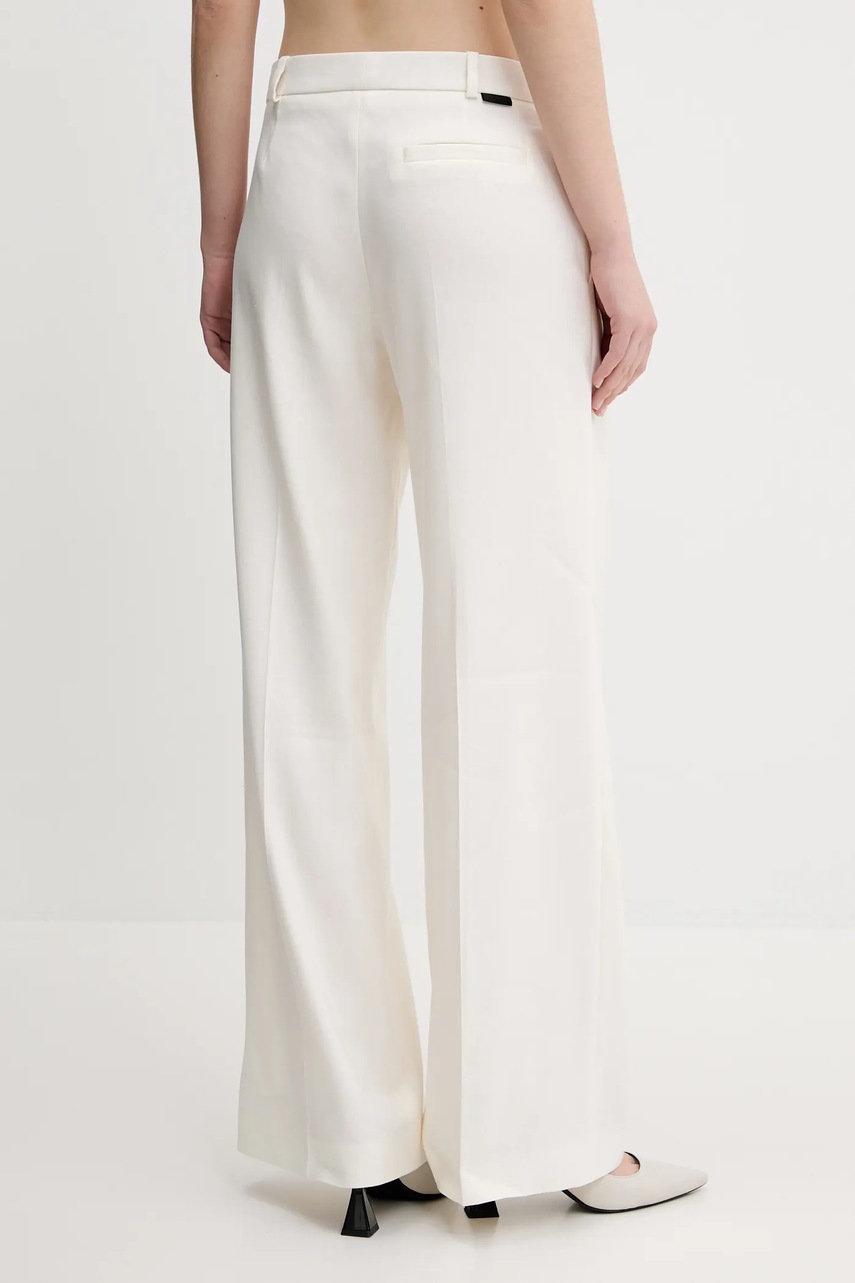 HUGO spodnie lniane damskie kolor beżowy szerokie high waist 50537619