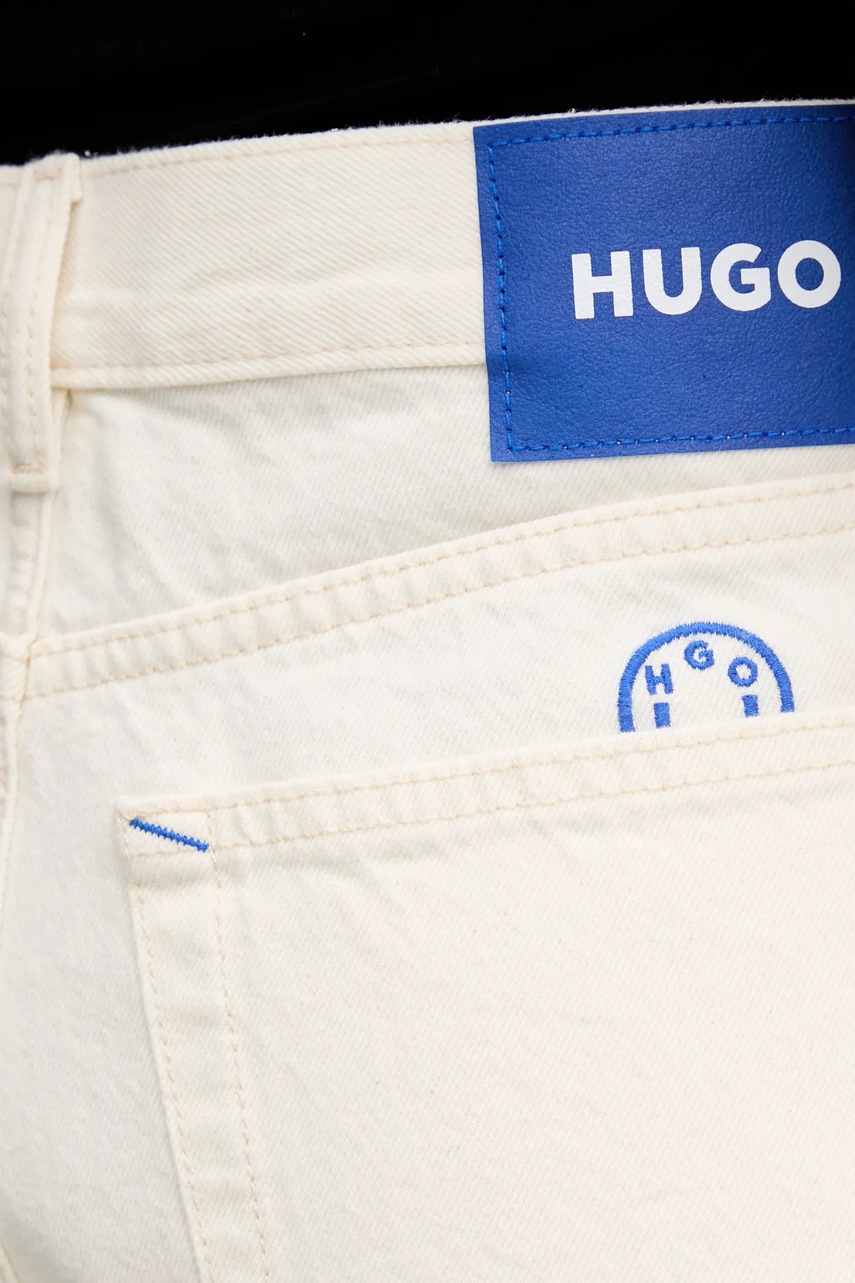 Hugo Blue szorty jeansowe damskie kolor beżowy gładkie high waist 50540160