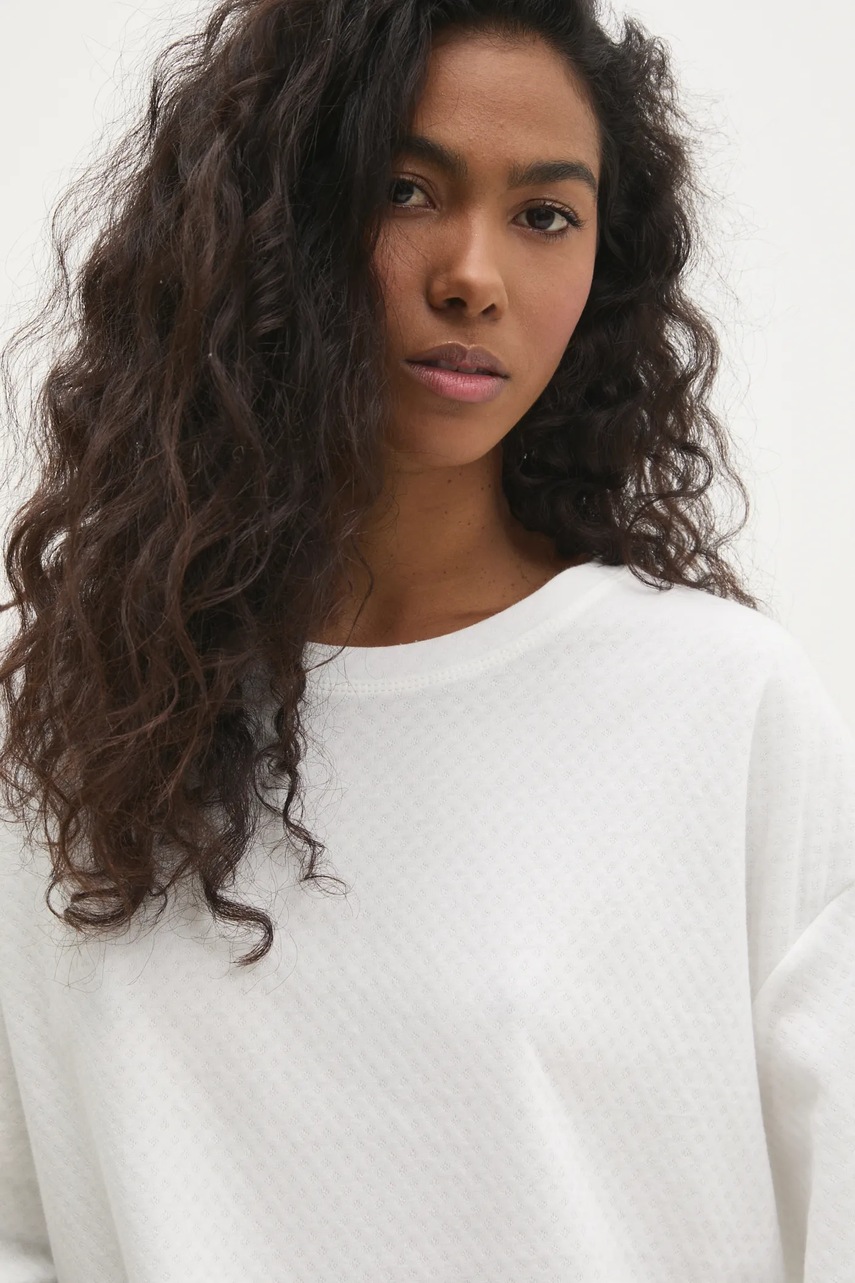 - Krój rękawa z obniżoną linią ramion nie ogranicza mobilności.